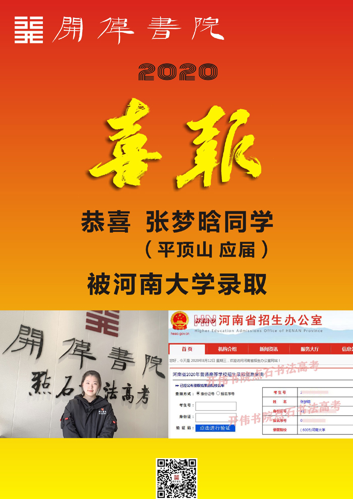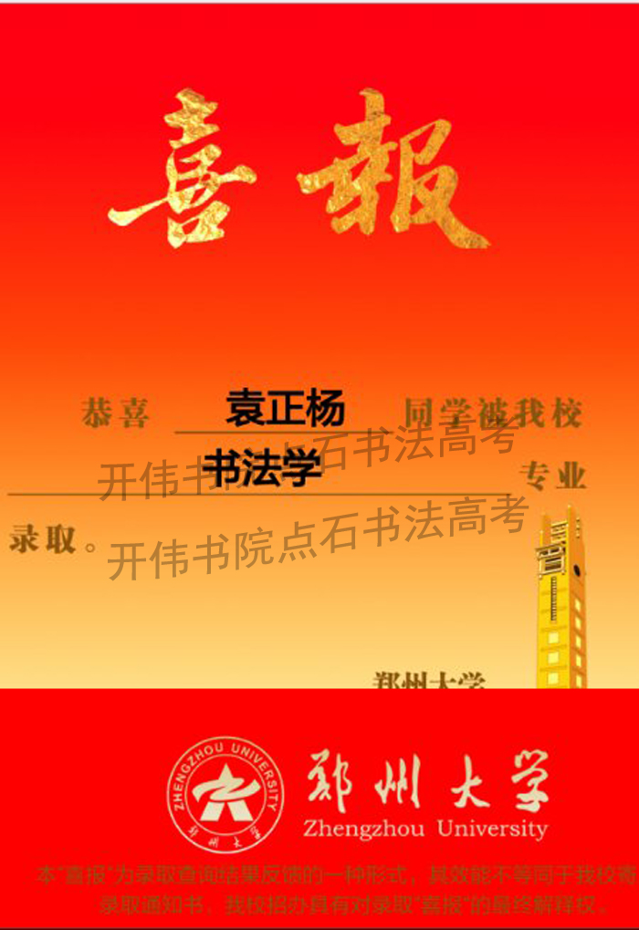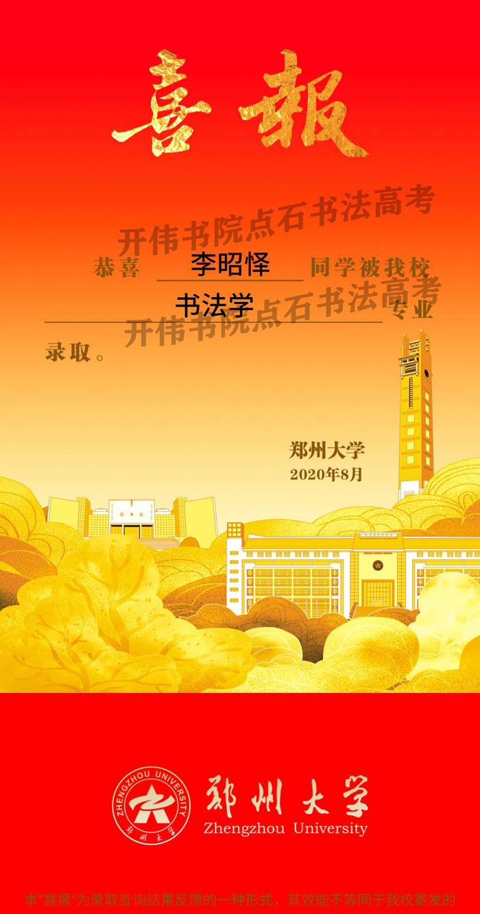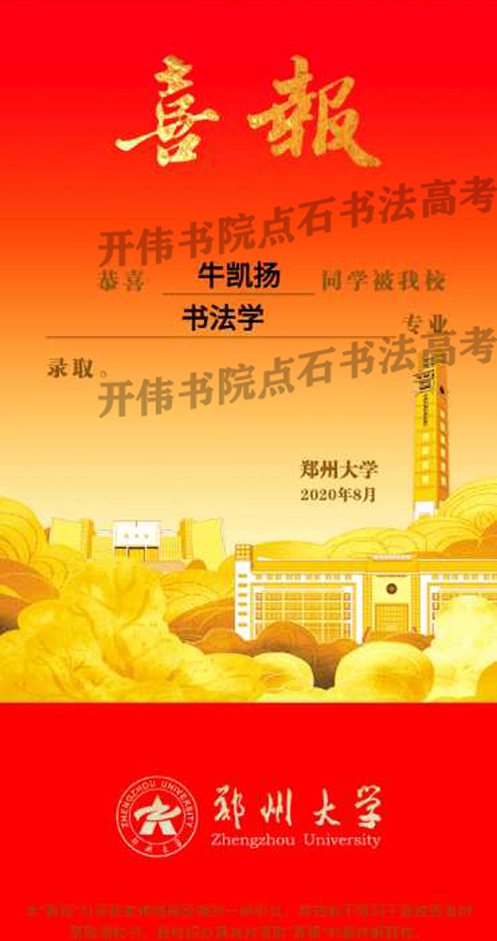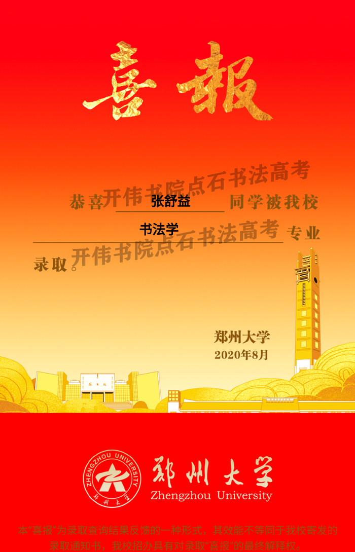 浙江大学录取2人(985、211,浙江大学书法专业2020年在河南共招收2人,被开伟书院囊括)