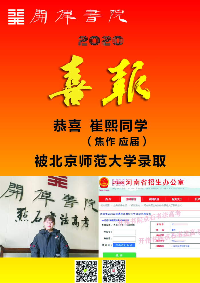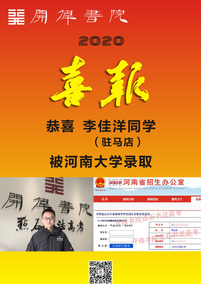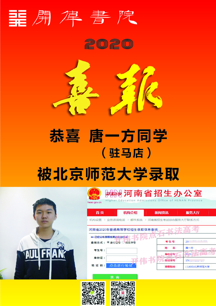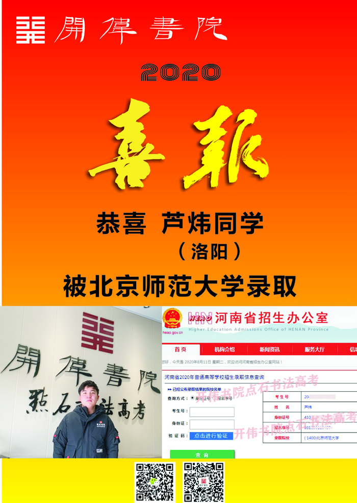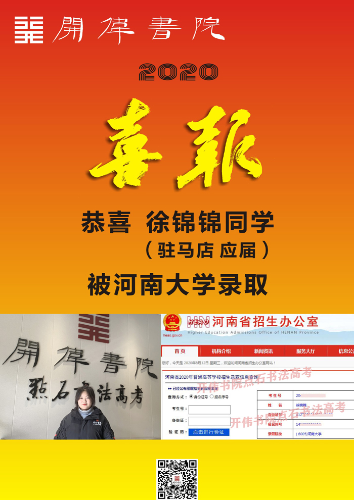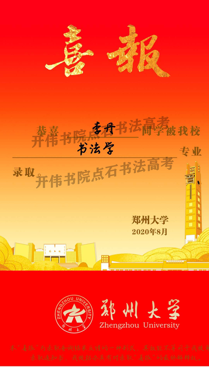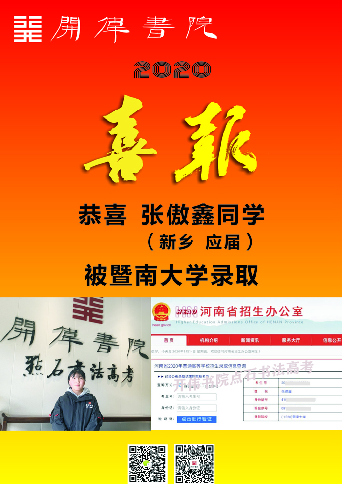 浙江大学录取2人(985、211,浙江大学书法专业2020年在河南共招收2人,被开伟书院囊括)