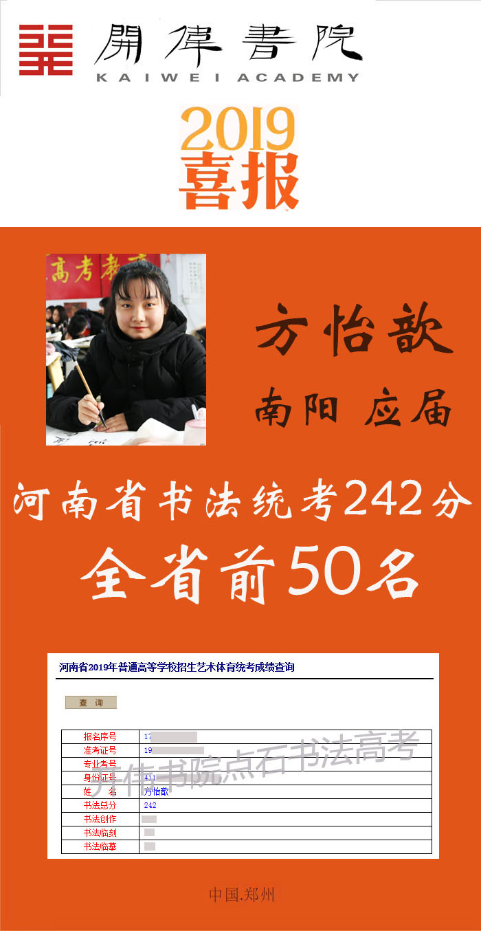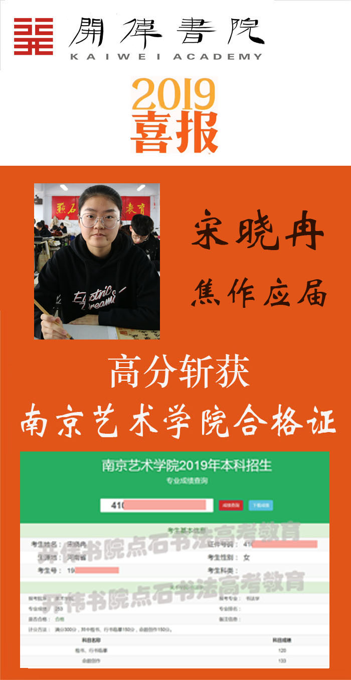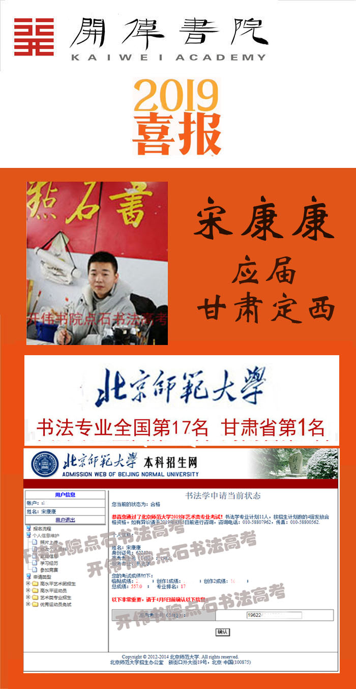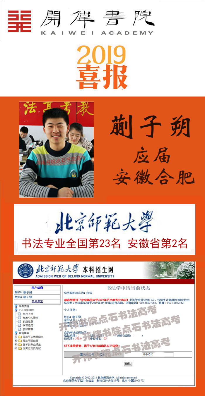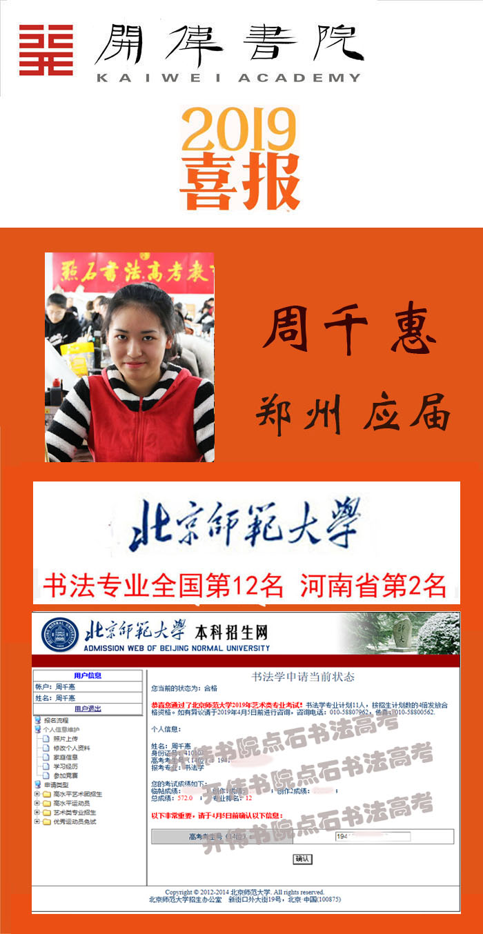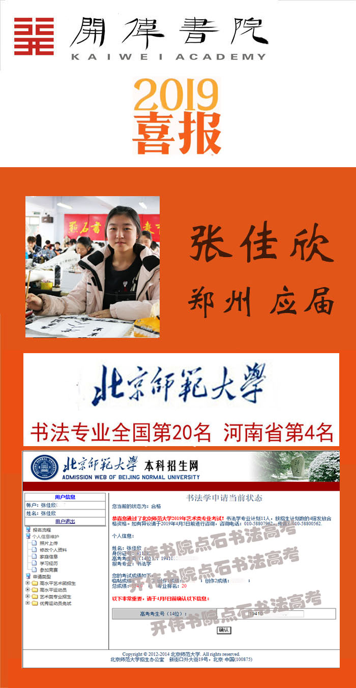 祝贺开伟书院点石书法高考高分过线北京师范大学8人!