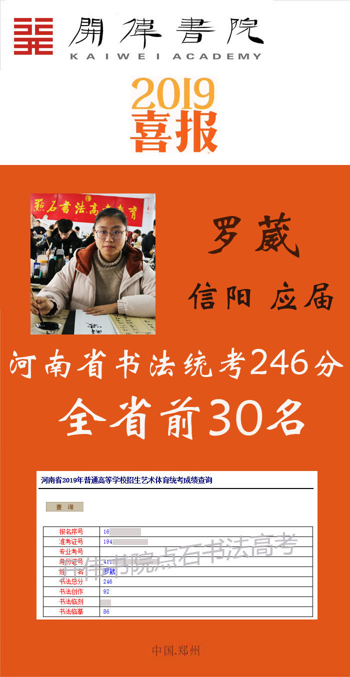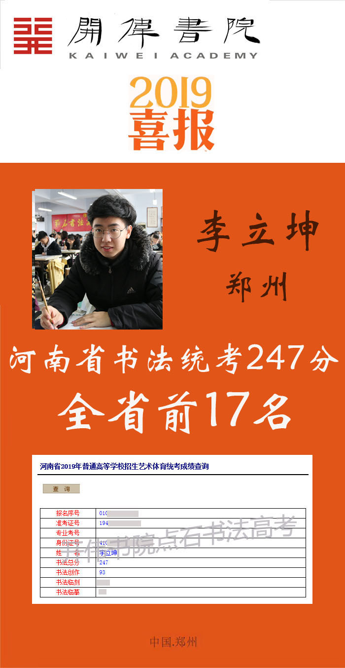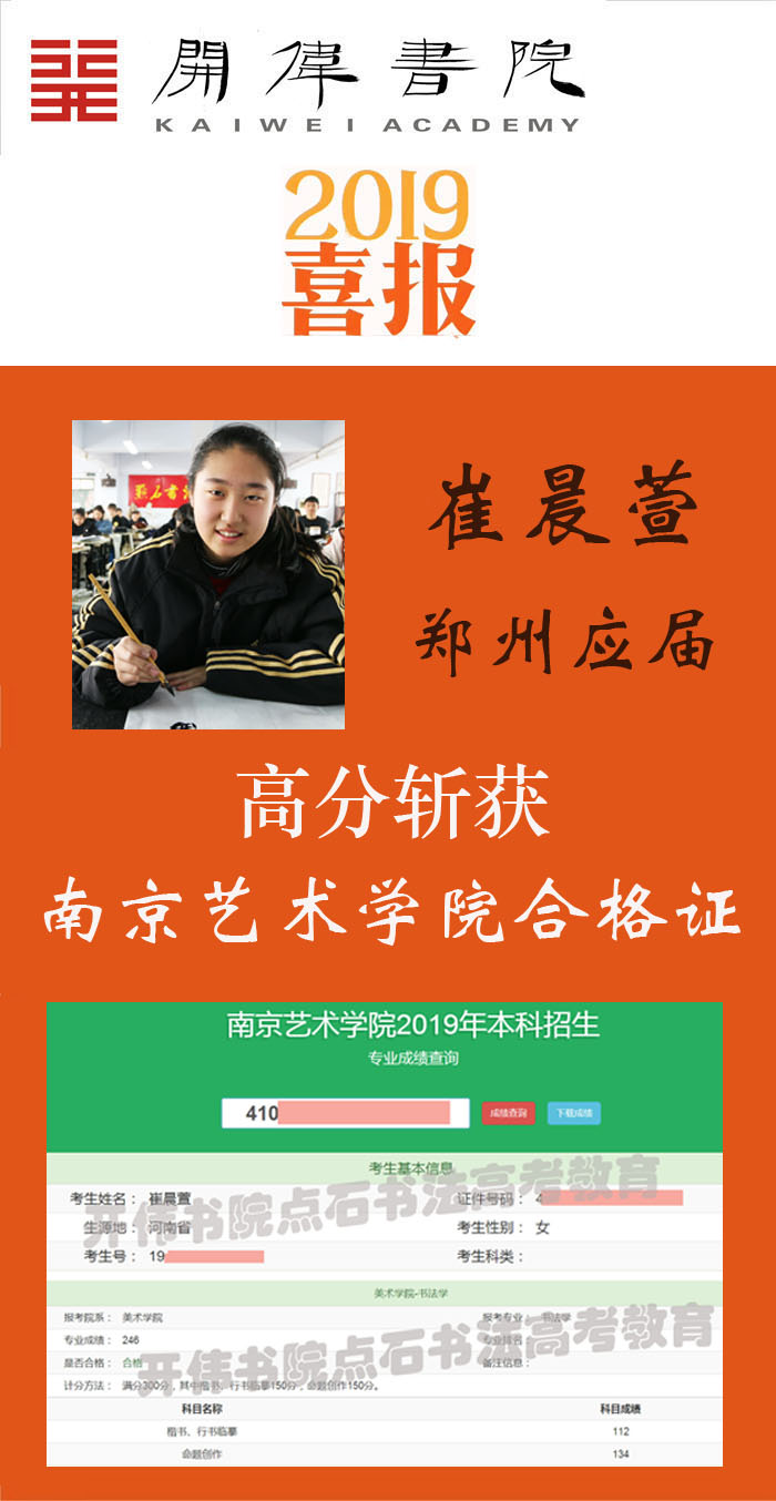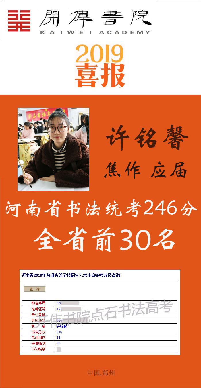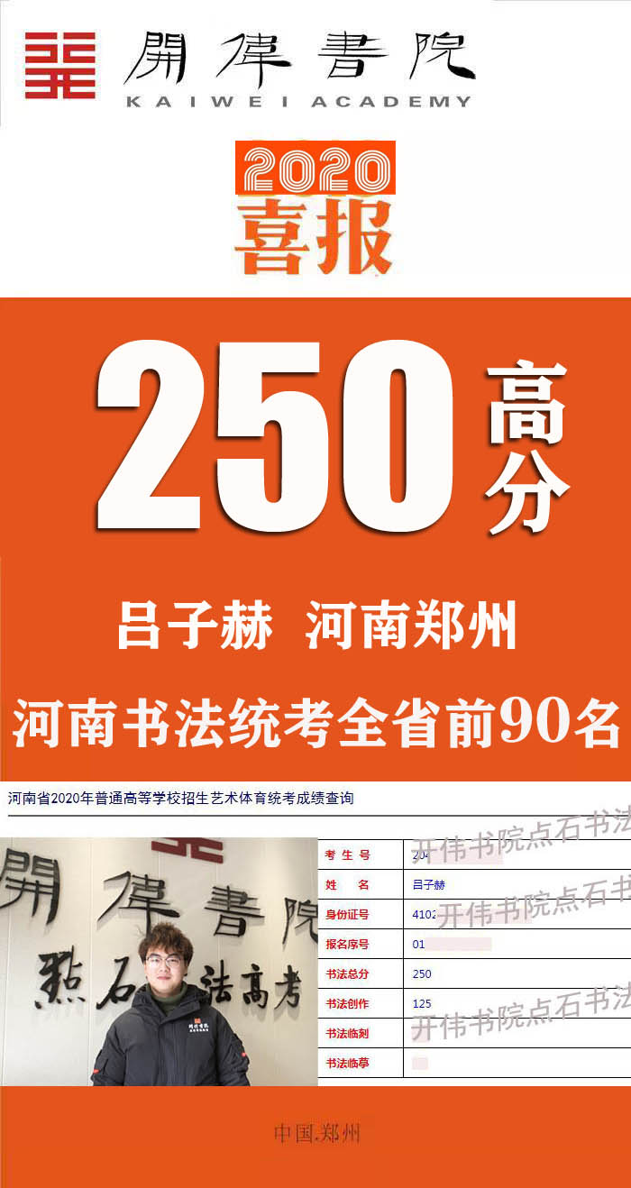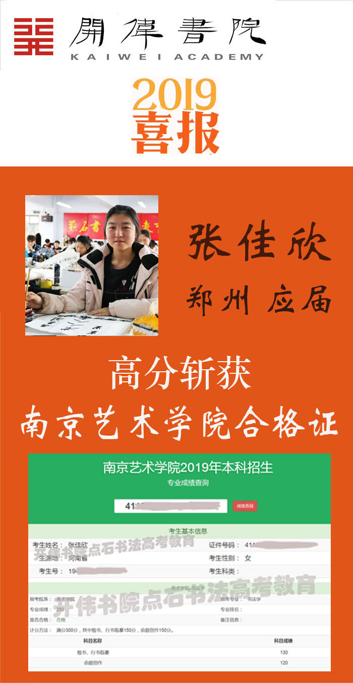 祝贺开伟书院点石书法高考高分过线北京师范大学8人!