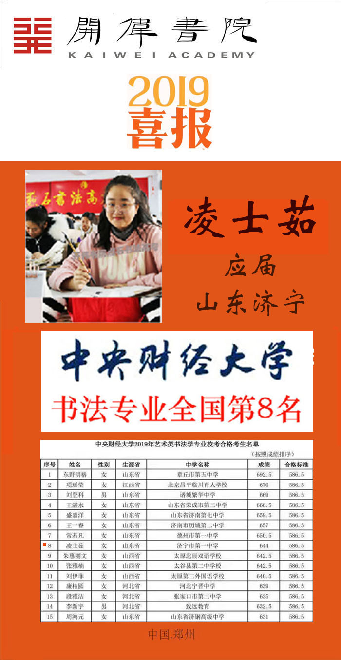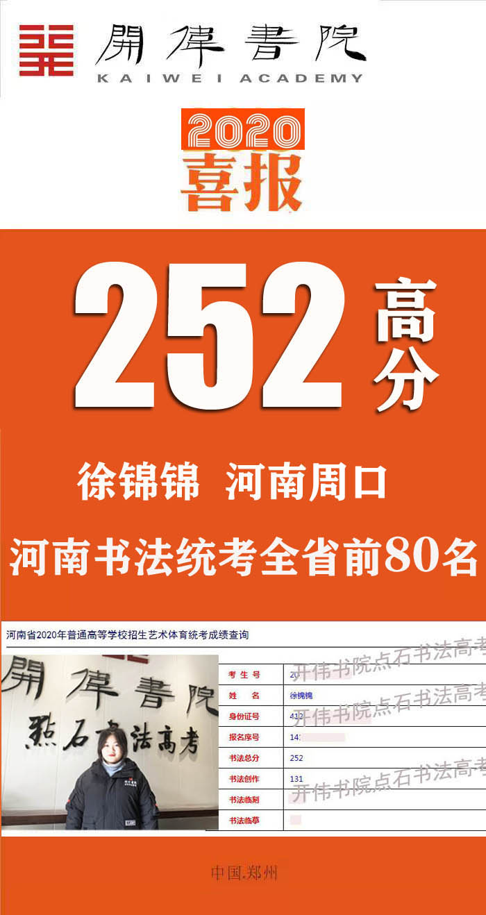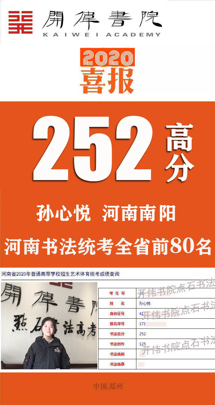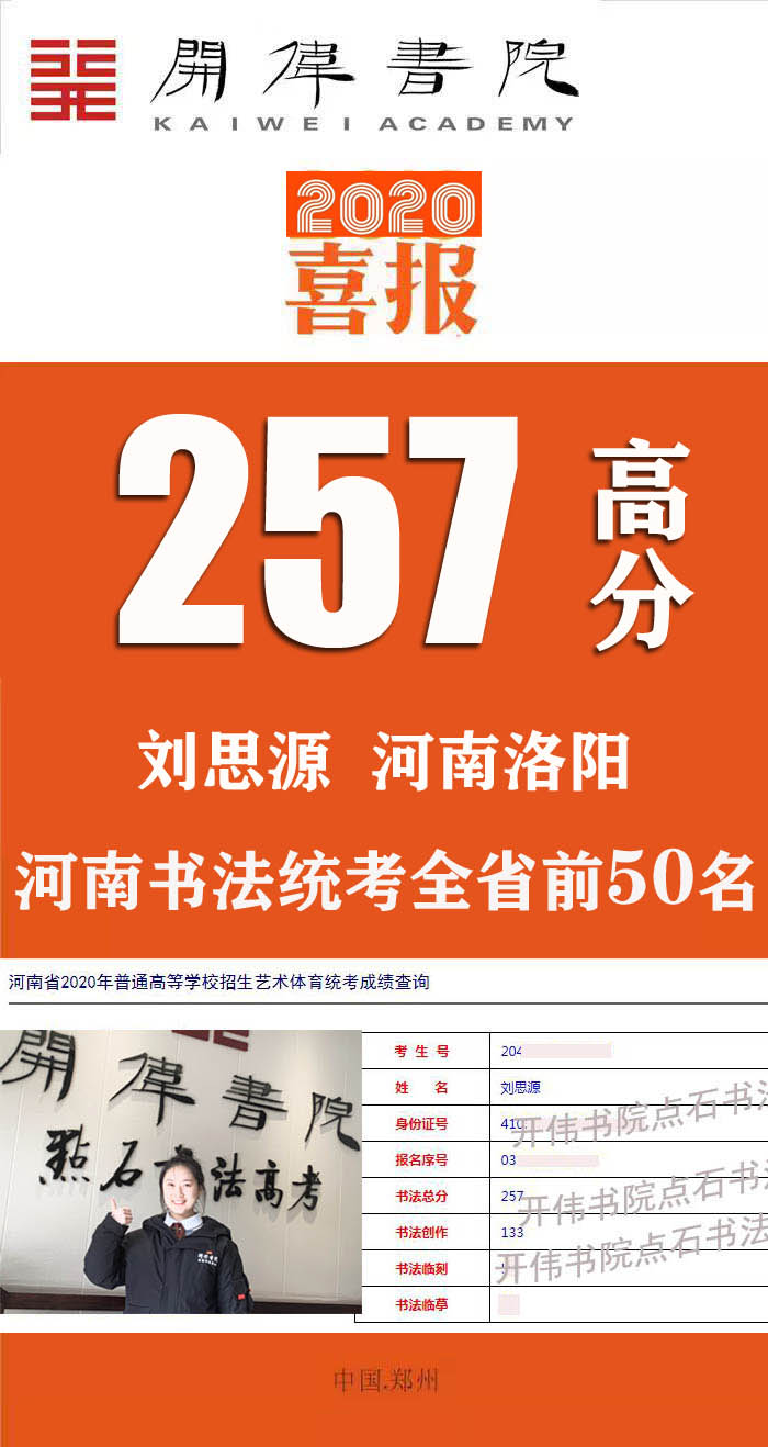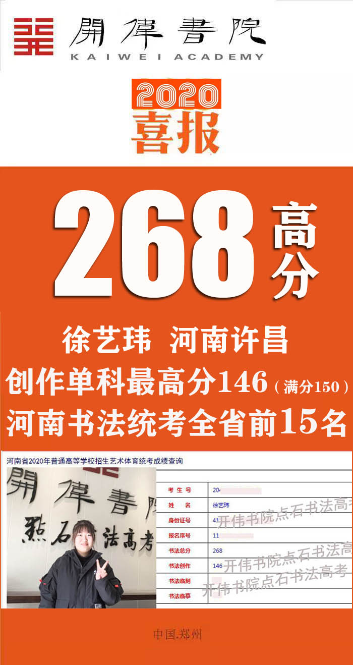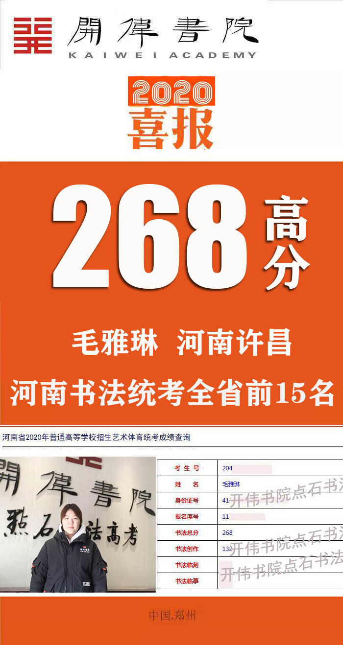 祝贺开伟书院点石书法高考高分过线北京师范大学8人!