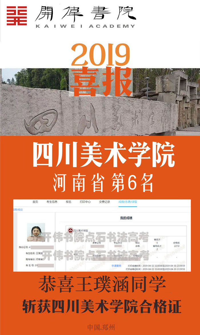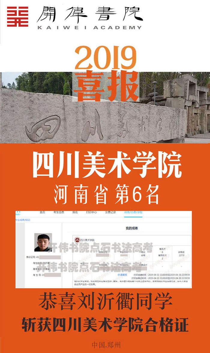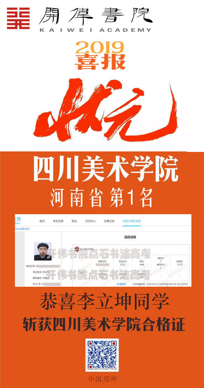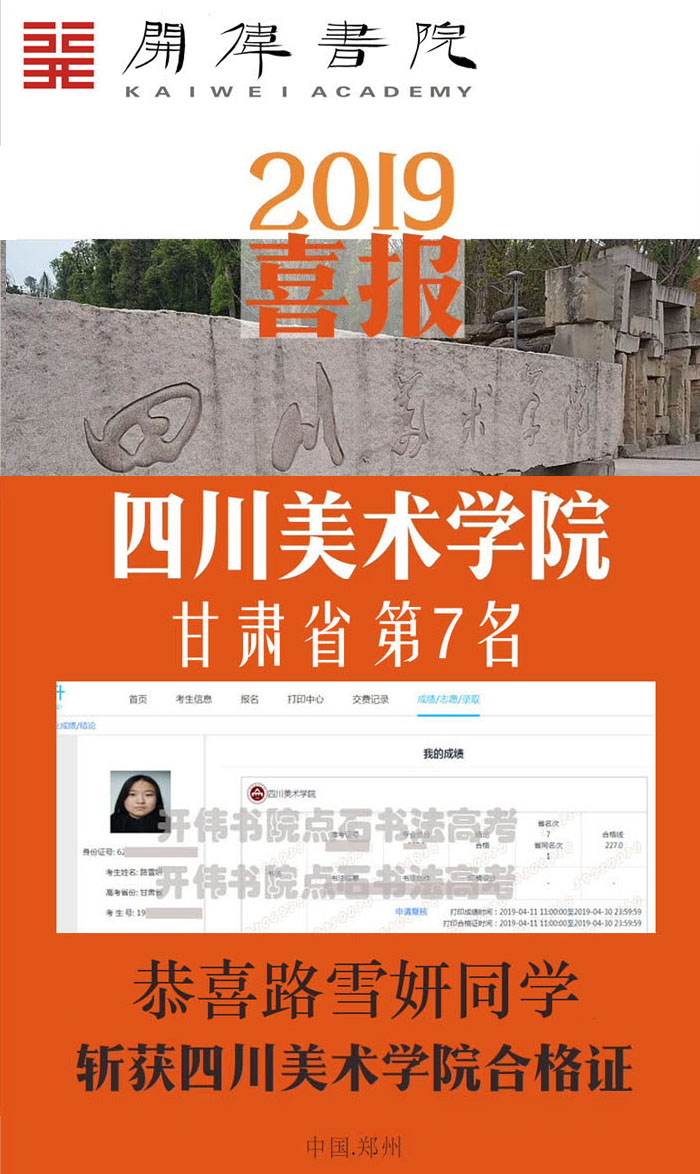 河南合格53人(2019年中央财大书法专业首次面向河南考生使用本省书法统考成绩录取,并根据省统考成绩在220分以上,方可报考,无须参加校考。我校河南籍学生考取220分以上53人,合格率90%)