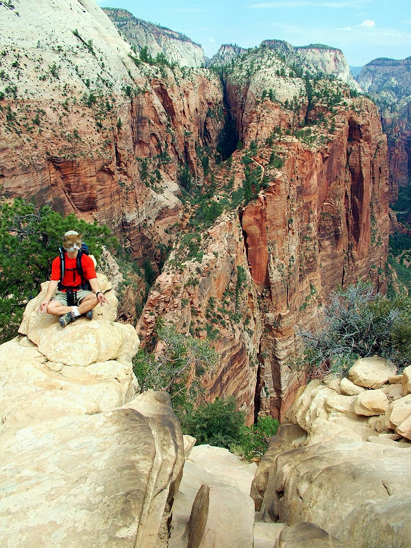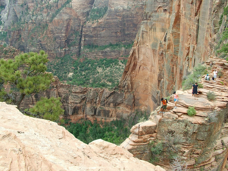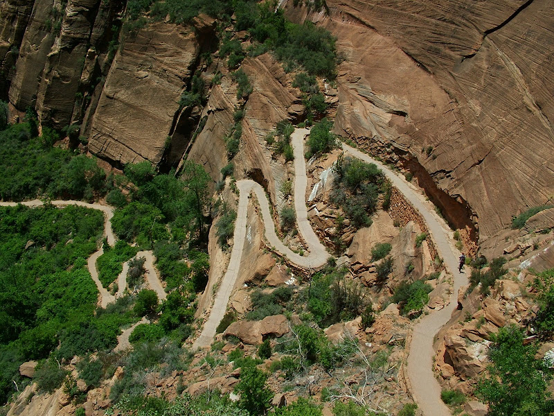 俄决定脚踏实地做人,从TRAIL上老老实实走回去,顺便还可以给领导拍照, ANGLE LANDING TRAIL似乎还挺难走的,有点华山一条道的感觉, 要时不时拉着铁链才行.