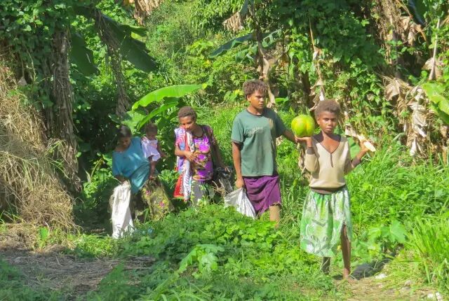 原来并不是这个杀手不太冷,也不是为了自卫,而是为了随时摘水果!岛上瓜果丰盛,饿了渴了随手可摘芒果木瓜,椰子凤梨。看来虽然瓦努阿图有了很多变化,这个摘水果的光荣传统,一直都没有改变。