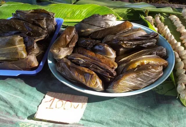 每到一地,我们都到处寻觅当地美食,对汉堡披萨之类的快餐避之唯恐不及。瓦努阿图有一种最传统的美食的叫Lap lap,