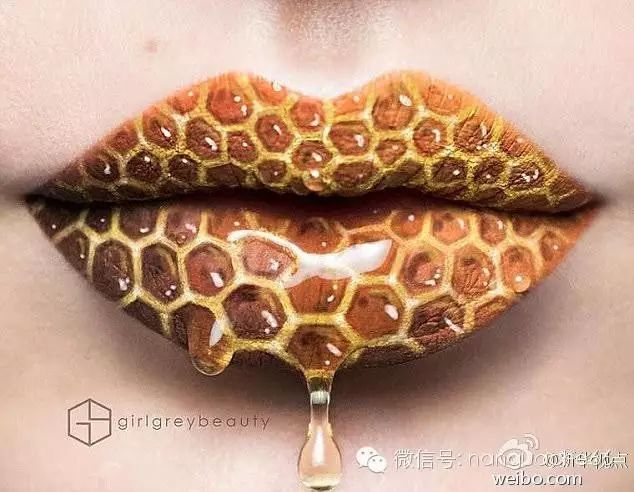 嘴唇上的蜂巢流出的滴滴蜂蜜,是否更加性感诱人呢?