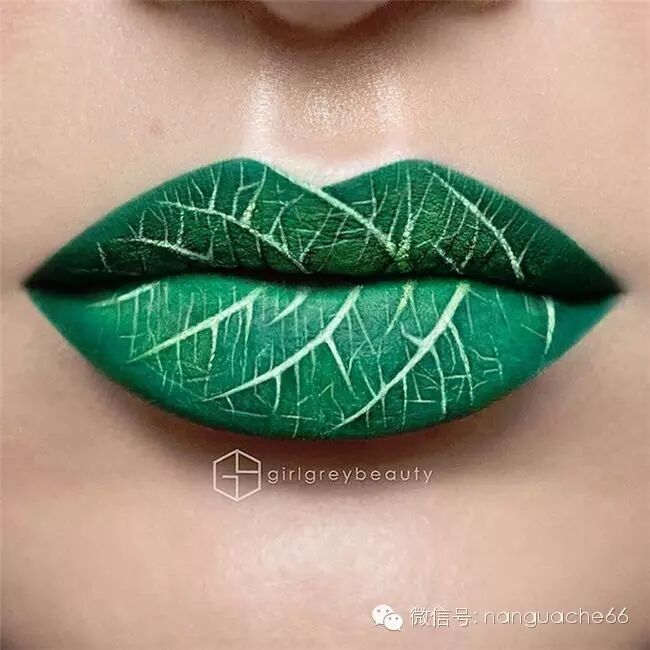 深深的唇纹上如同绿色底下细小的叶脉,丰满的嘴唇上的绿叶显得更有生命力!