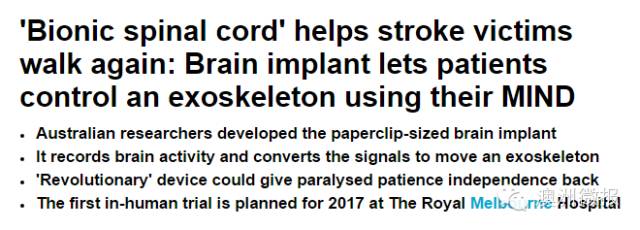ZT:重大突破!澳洲医疗科技将战胜瘫痪,仿生脊髓造福全人类!