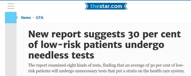 报告显示,仅仅一年中加拿大人就接受了100多万个"没必要的"检查、治疗项目。这不仅严重拖慢加国的医疗系统运作效率,还可能损害病患的身体健康。