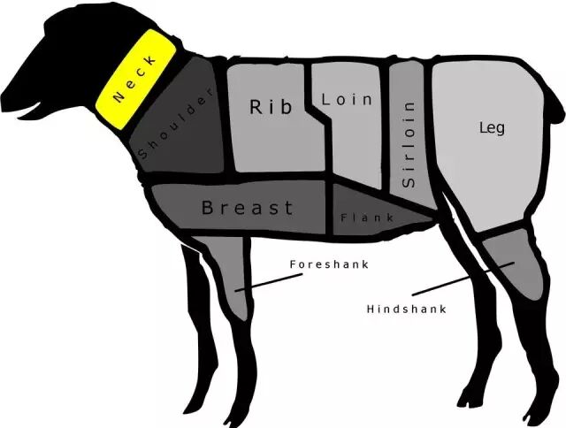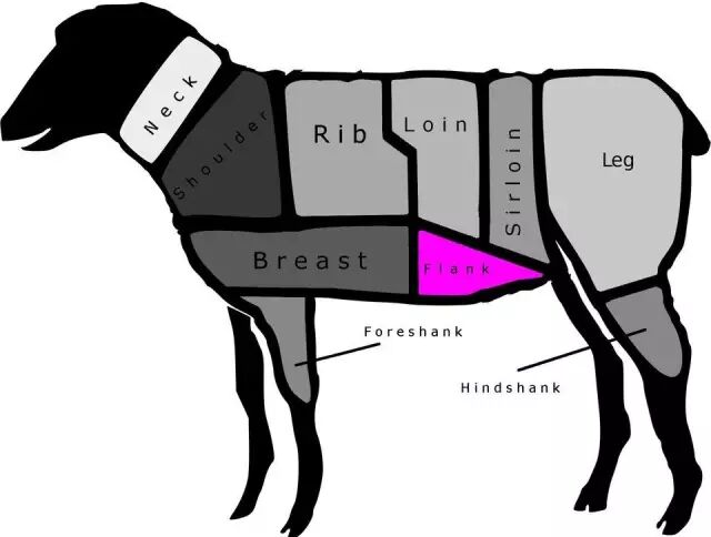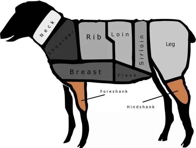 超市和肉店里卖的羊肉通常被切分为以下几个部分: