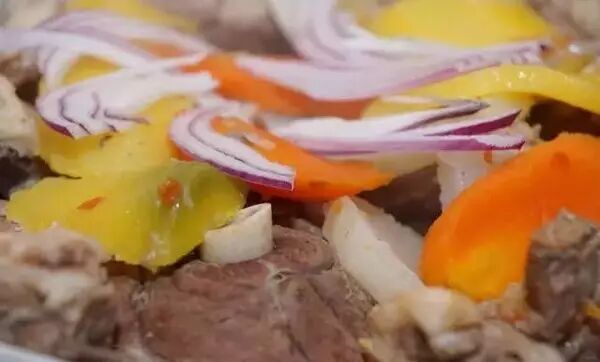 羊胸肉遍布大理石花纹,乳白色脂肪在肉内占比例很高,结缔组织明显可见。虽然胸肉肥腻,但是如果你慢煮一段时间后,脂肪层会消失,留下细嫩美味的肉质。