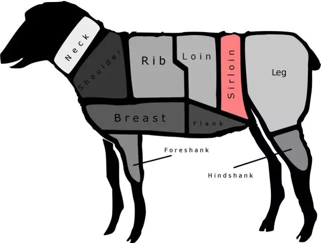 Neck,Shoulder,Rib,Loin,Sirloin,Leg, Breast, Flank,