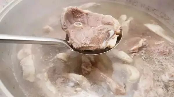 第二步:洗净的羊肉放在锅里,加凉水,大火烧开,撇去黑褐色的血沫,血沫撇净就是白沫了,多撇几遍直到把白沫也撇净。