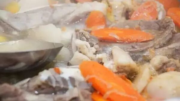 用料:羊肉羊骨1500g,大葱1根,盐。
