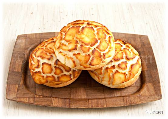 -荷兰脆皮面包(Holland Dutch),最大的特点在于烘烤前在面团表面涂上一层米浆,经烘烤后,表面硬脆,香味十足,因为表面脆皮的裂痕像老虎,所以也叫老虎面包(Tiger Bread)。