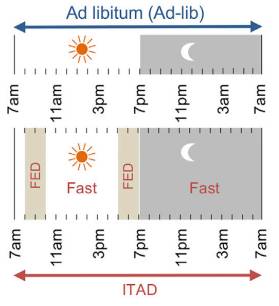 ITAD法的进食时间窗与上方对照组(AD-lib)的对比,Fast区即为餐间禁食时间段