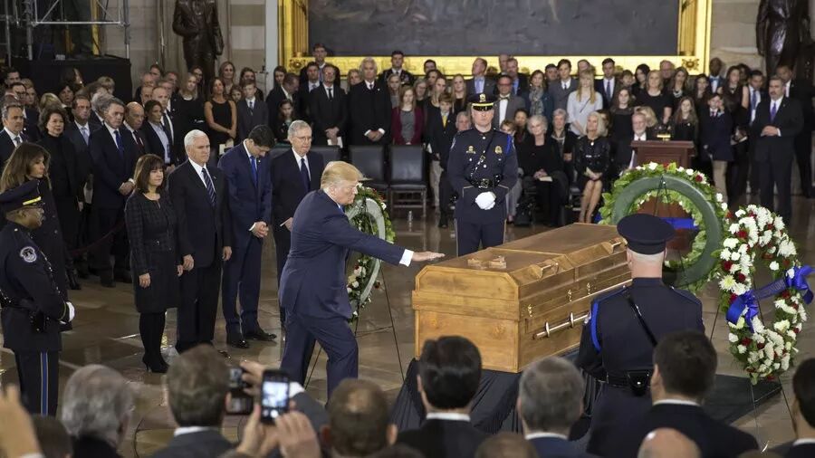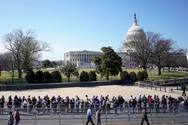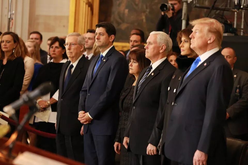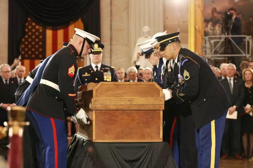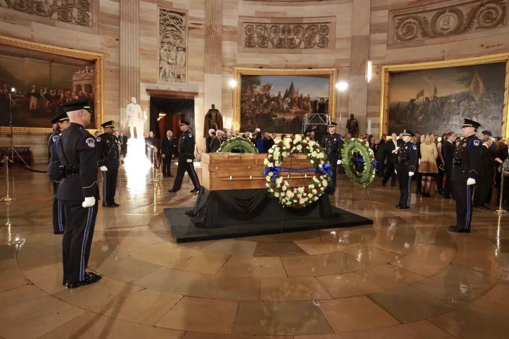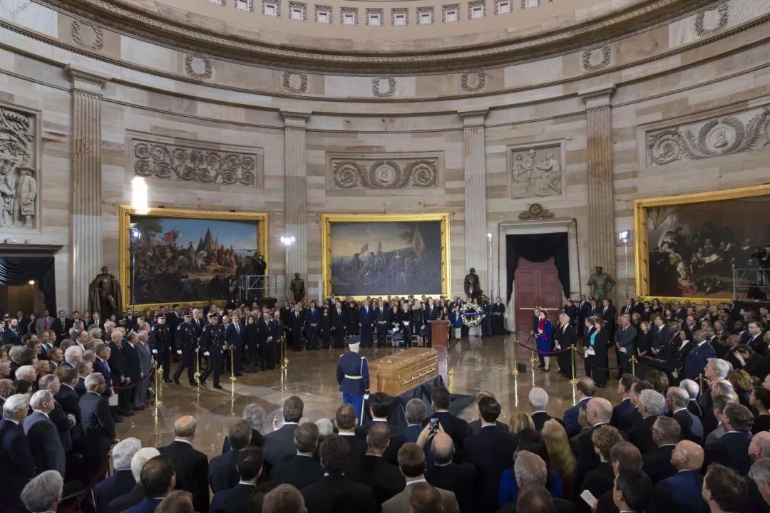 美国总统、副总统和参众两院的议长在国会山吊唁仪式上