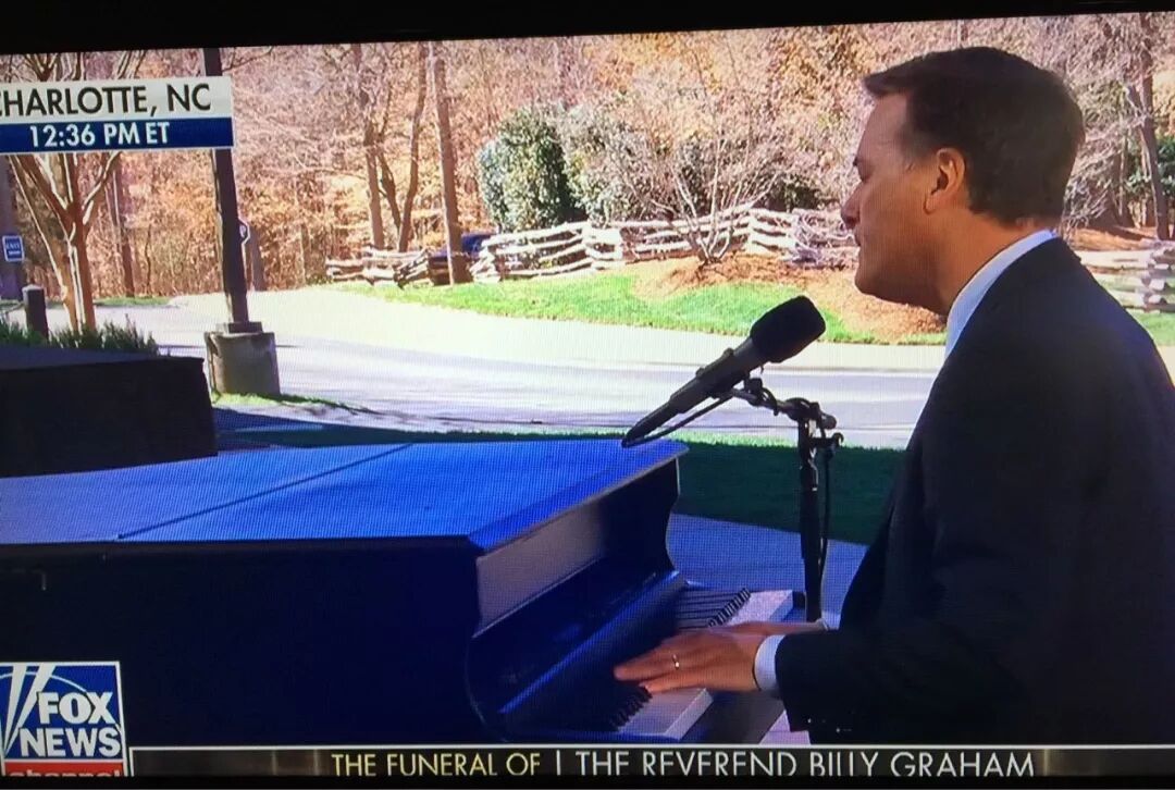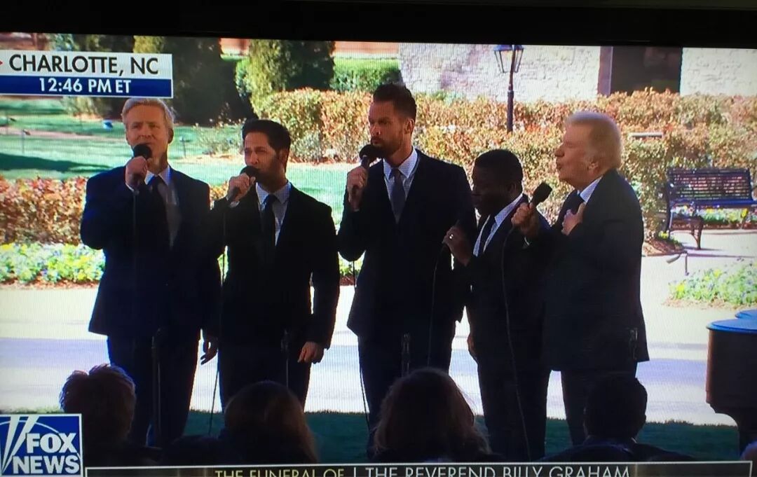著名基督徒音乐家 Michael W. Smith 和 Gaither合唱团在葬礼上唱圣歌