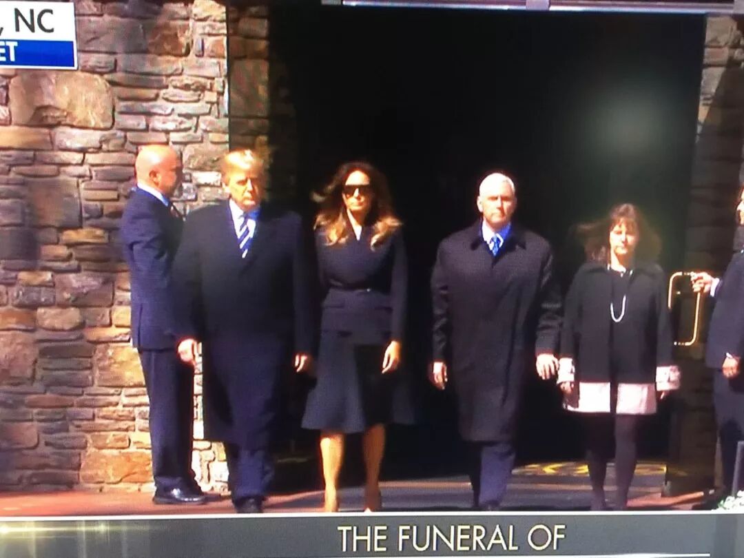 美国总统川普和副总统佩斯到北卡夏洛特参加了葛培理的葬礼,以及家人、亲朋好友和来自世界各地的大约二千多人参加,设在一个帐篷里的葬礼以记念葛培理的福音布道事工是从1949年洛杉矶的大帐篷布道会开始的。