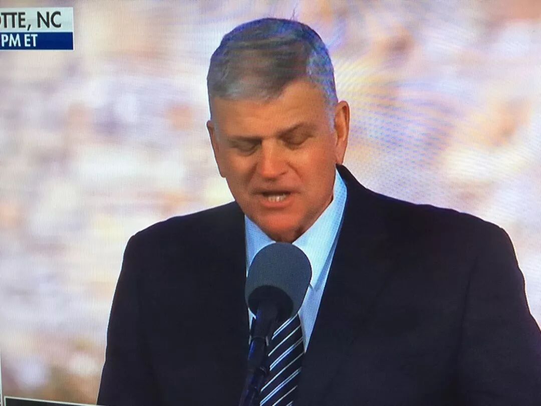 川普总统说:"在这里,我们不由而衷的记得美国是一个由祷告支撑的国家,今天我们在这里为我们的国家祷告,祈求主在这片土地上兴起更多的象葛培理一样的人,向神的宝贝儿女们传播爱和希望的信息。"