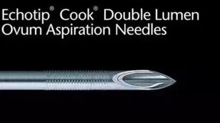 取卵针针口直径 2 毫米,尖端非常锋利,因为它需要接连刺穿阴道,再刺穿卵巢,最后刺入卵泡,吸出卵子。