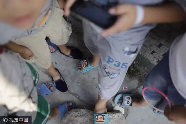 ▲一群打工子弟学生正在围观一款手机游戏。图/视觉中国