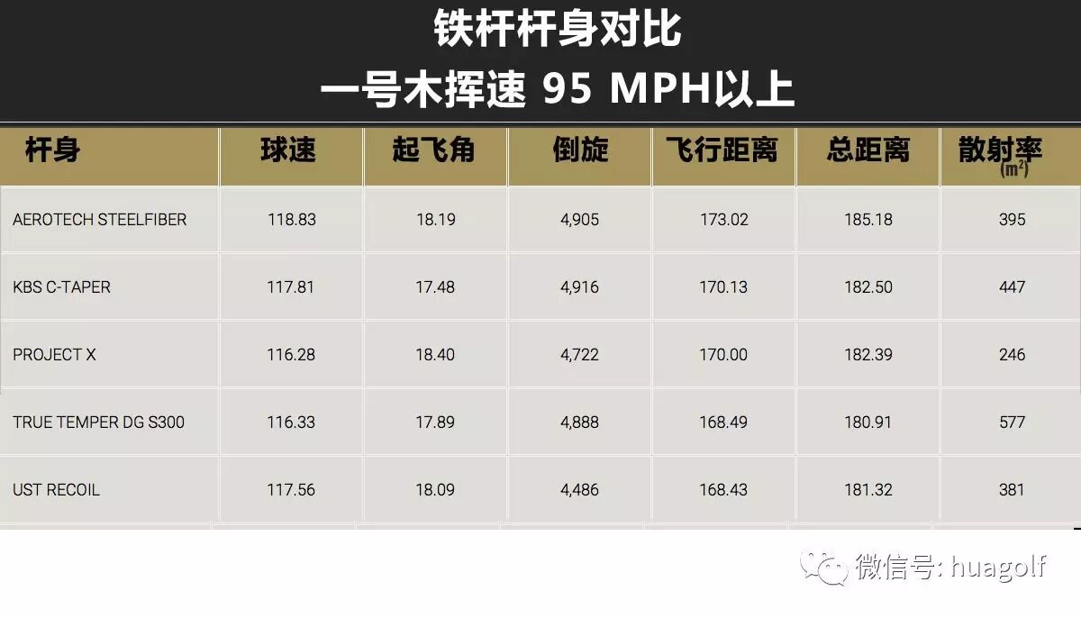平均来说,SteelFiber(碳钢)杆身达到最快的球速,以及飞行距离和总距离。
