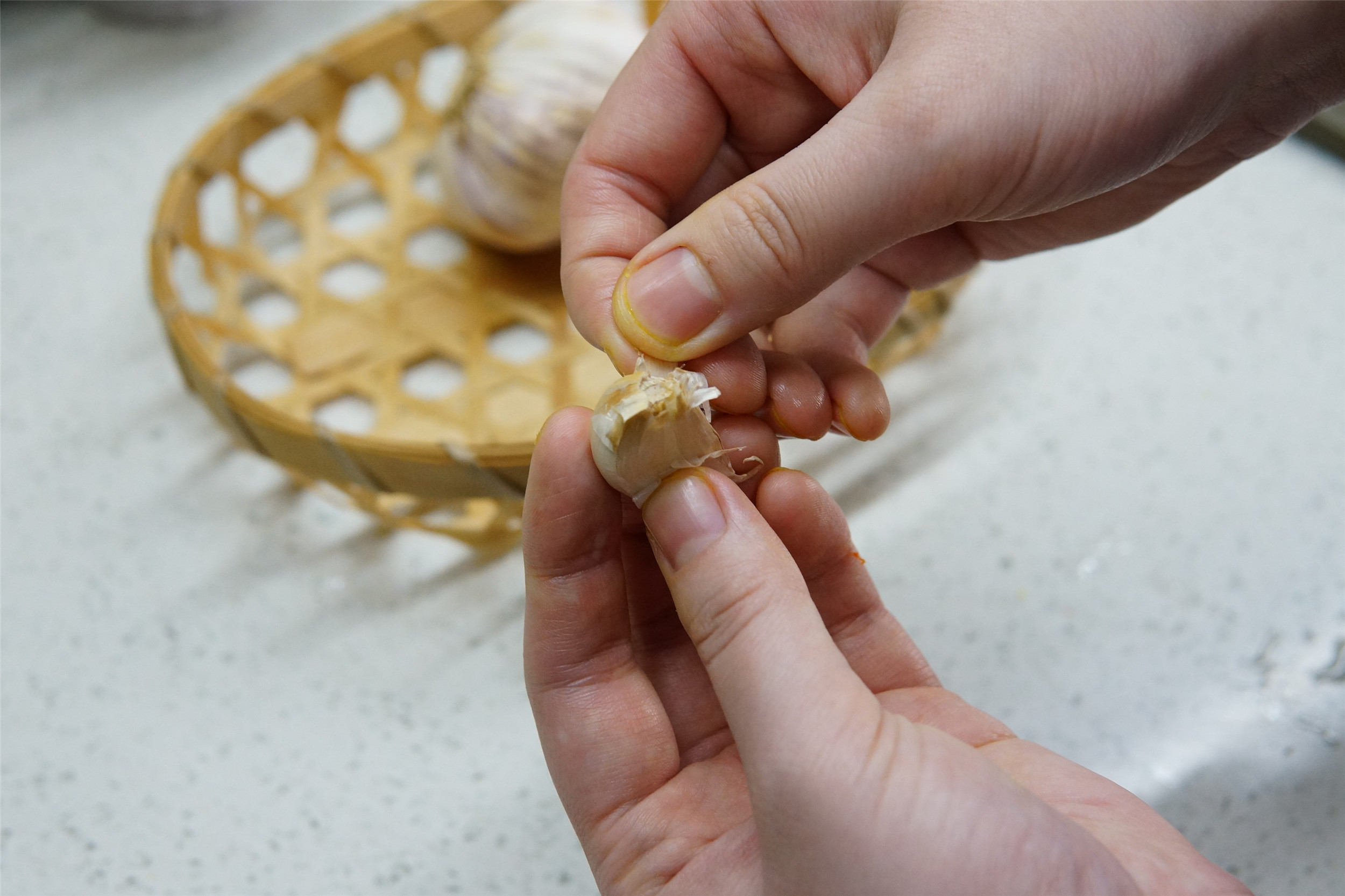 1、剥蒜,大蒜去皮最好用手慢慢地剥,不要图方便暴力剥蒜,这样会造成大蒜损伤,腌制好的腊八蒜损伤部位颜色会很深,影响美观。