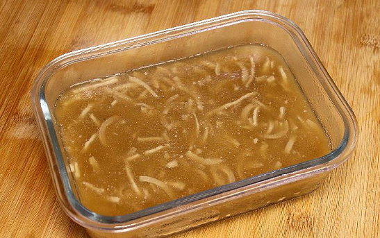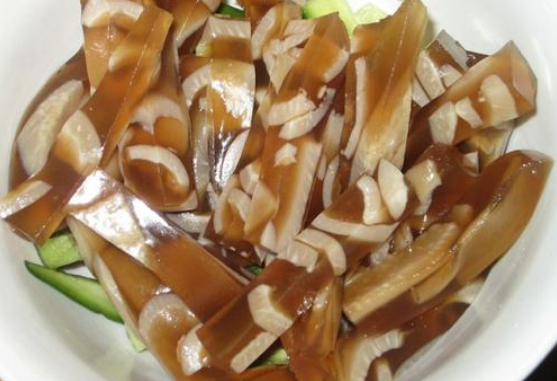 (3)猪皮冻想要凝固成形,富有弹性,水量不能太多,记住猪皮和水的比例1:3。