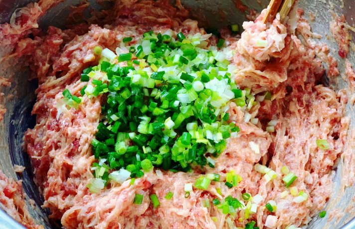 最后放进肉馅中,还可以加少许香葱,肉馅会更香浓美味。