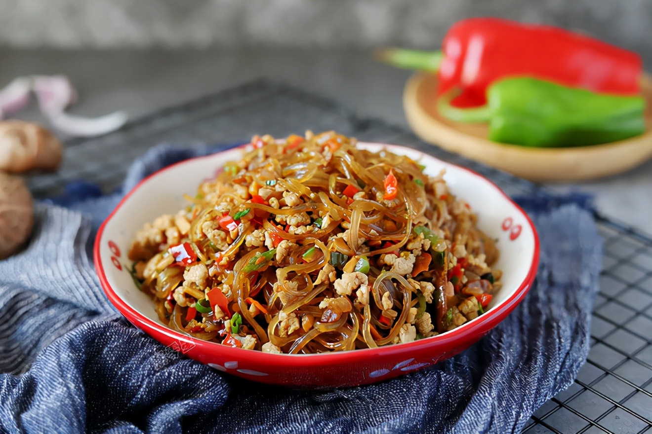 肉沫粉条也是道家常菜,很多朋友也经常在家做,但是它也是一道非常令人发胖的菜肴,因为粉条就是淀粉做的,再加上用猪肉末炒出的猪油给它烹饪,所以吃起来非常容易发胖,咱们减肥时期,这道菜还是尽量少做。