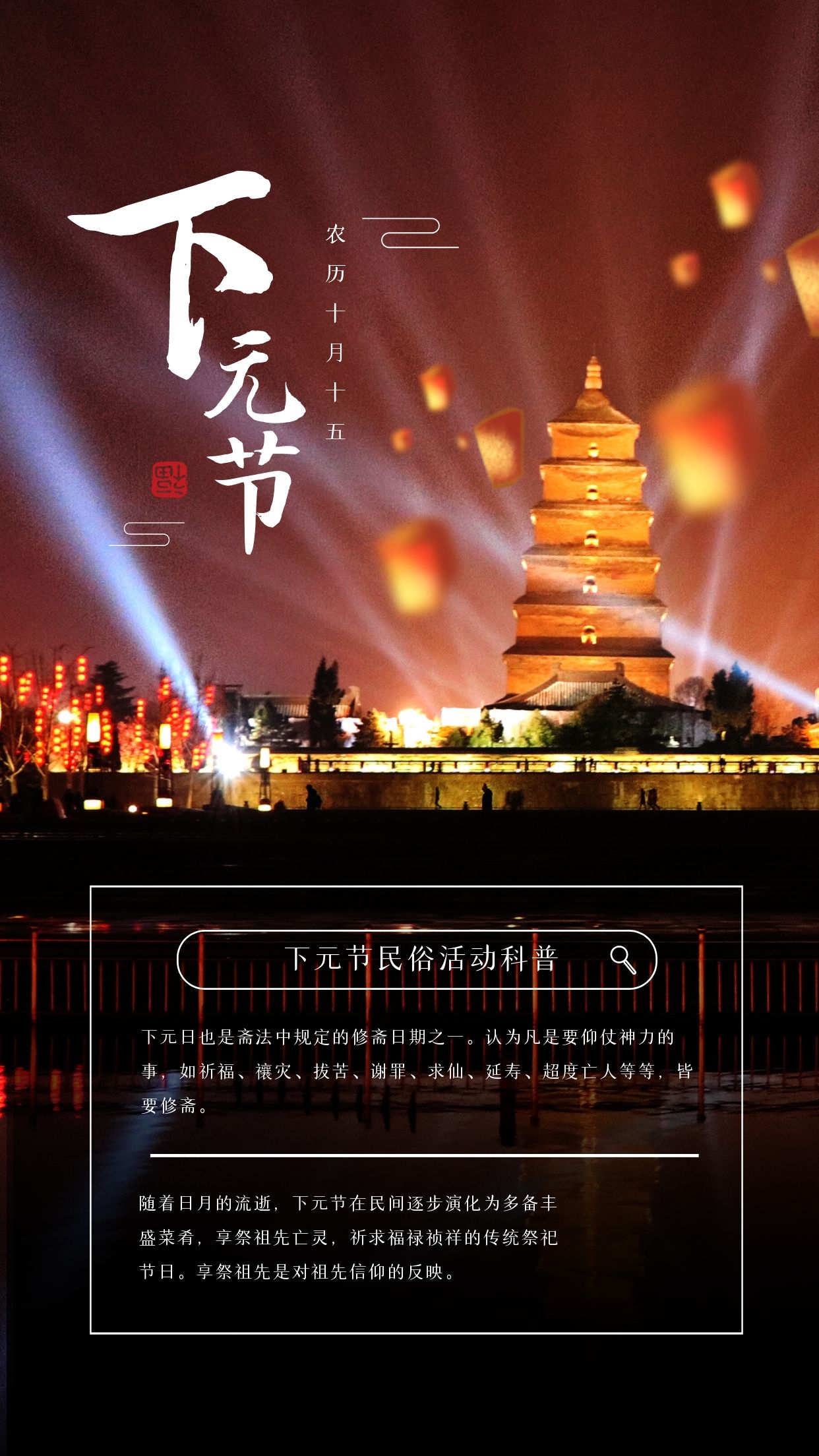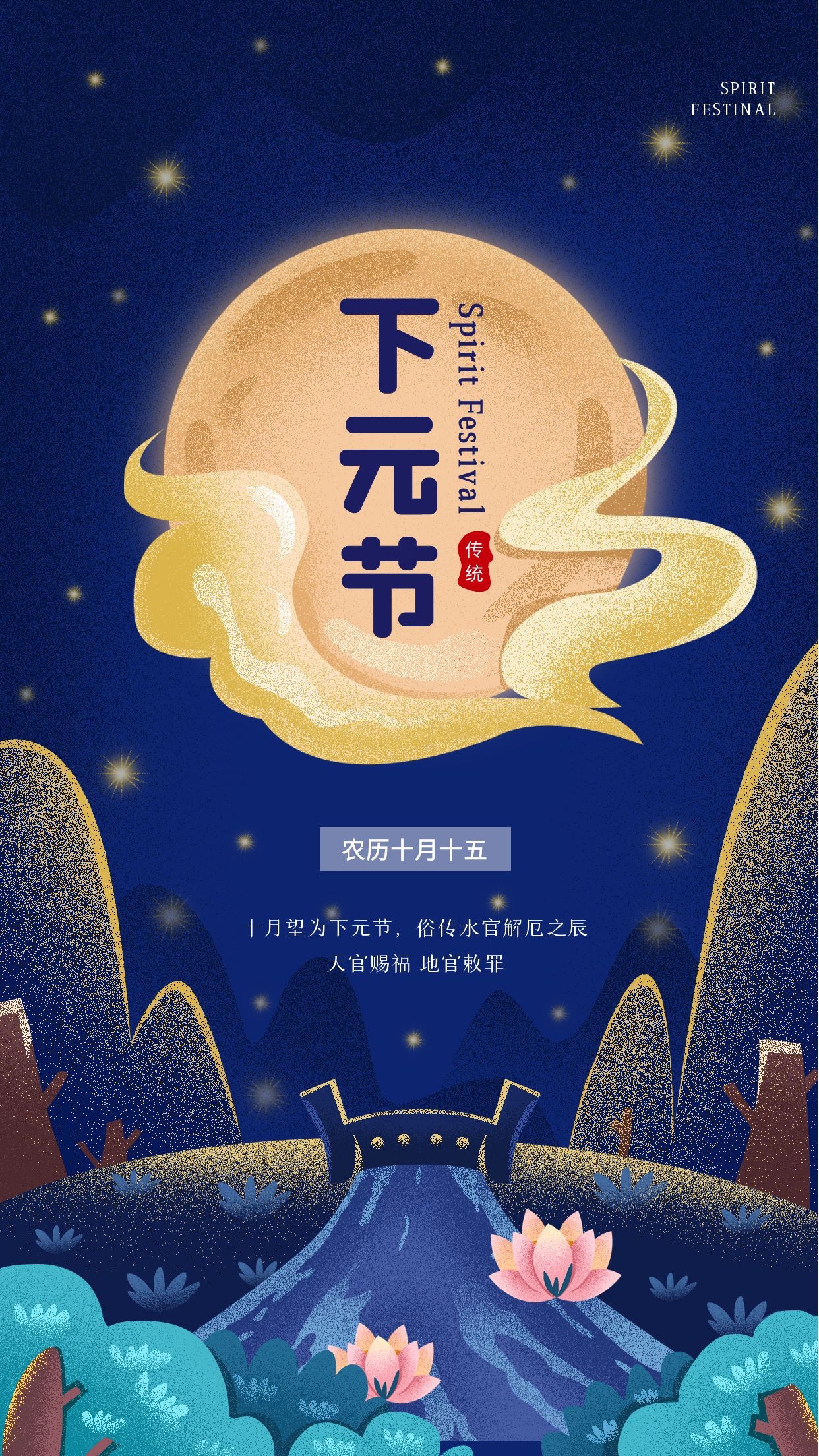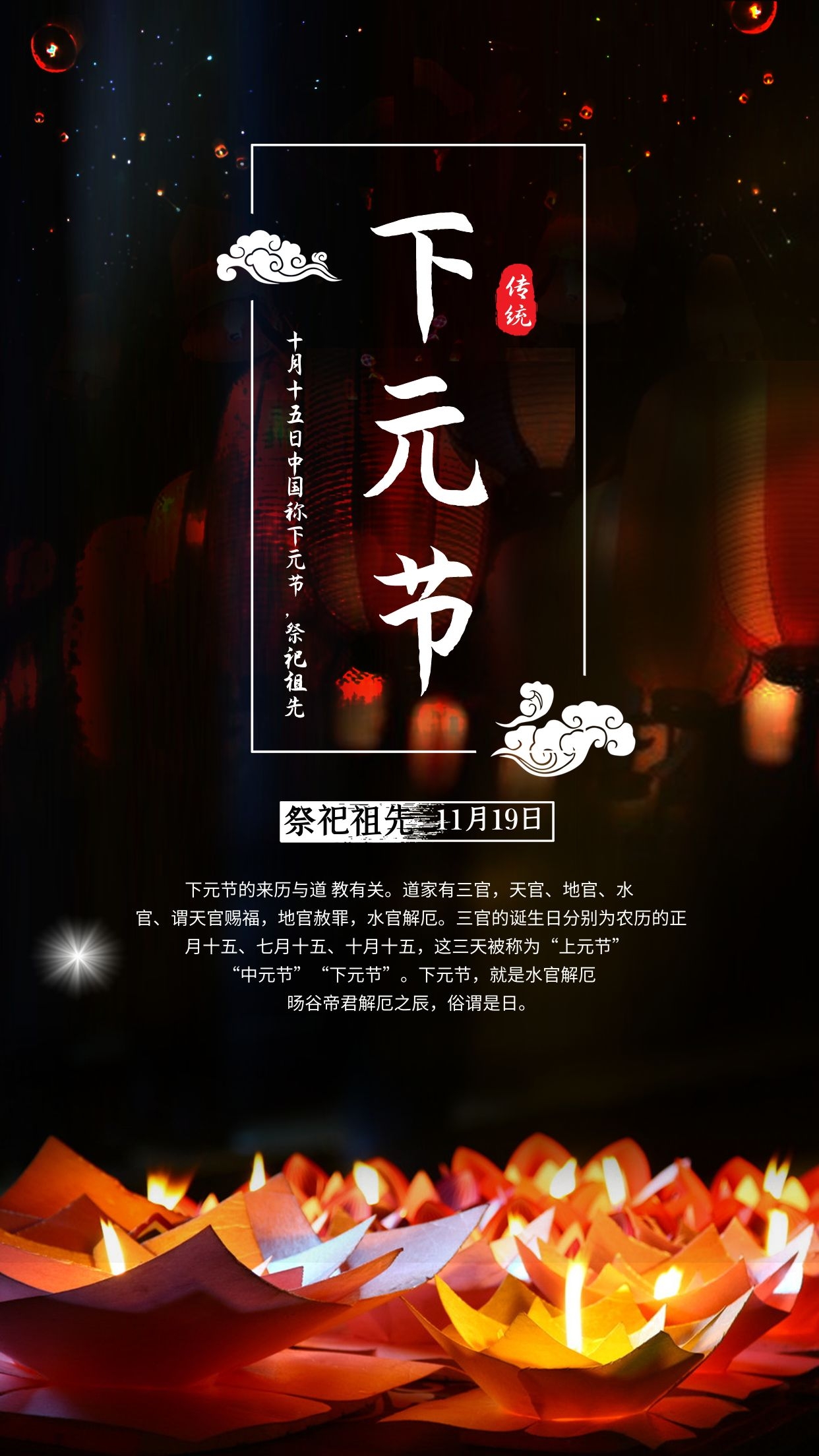农历十月十五,是中国古老的“下元节”。亦称“下元日”、“下元”。根据中国的历法,农历在十月十五,也是一年中最后一个月亮节,在这个月圆的时候,人们要进行最重大的祭祖活动。