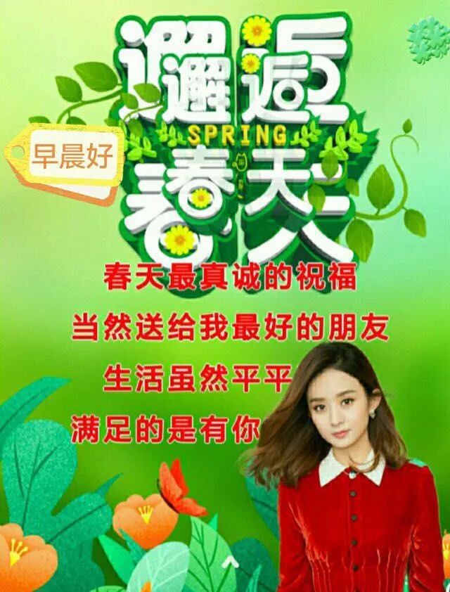 春日清晨,祝福飘香;花语鸟鸣,溪水歌唱;烦恼消除,快乐飞翔;上班出行,赏尽春光;指动荧屏,问候情长;祝你今早,拥抱欢畅!