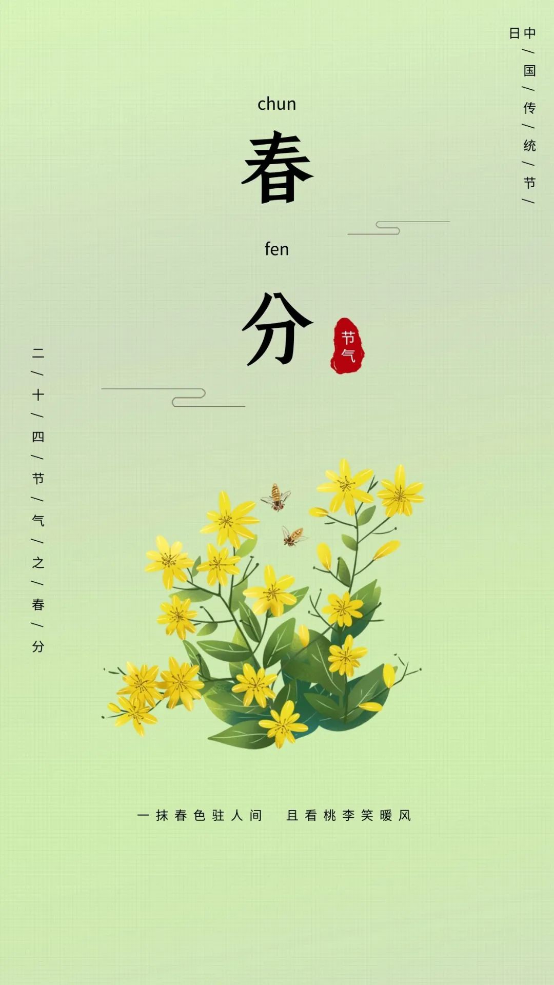 春分花间处,潺潺雨点声;觉眠念好友,轻语祝福。送你阵阵梨香,愿你生活精彩滋长;送你片片青葱,愿你心情曼妙轻松。春分愉快!