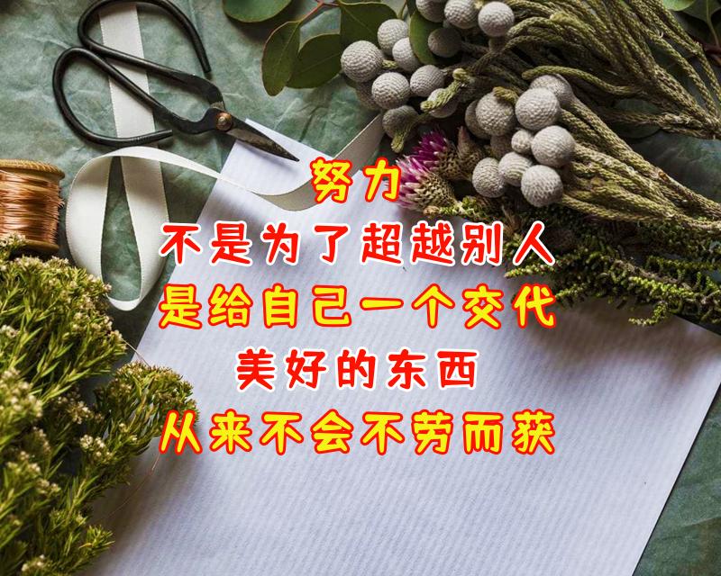 努力不是为了要超越别人,是给自己一个交代,美好的东西从来不会不劳而获,成功靠的不是豪言壮语,而是脚踏实地的努力!