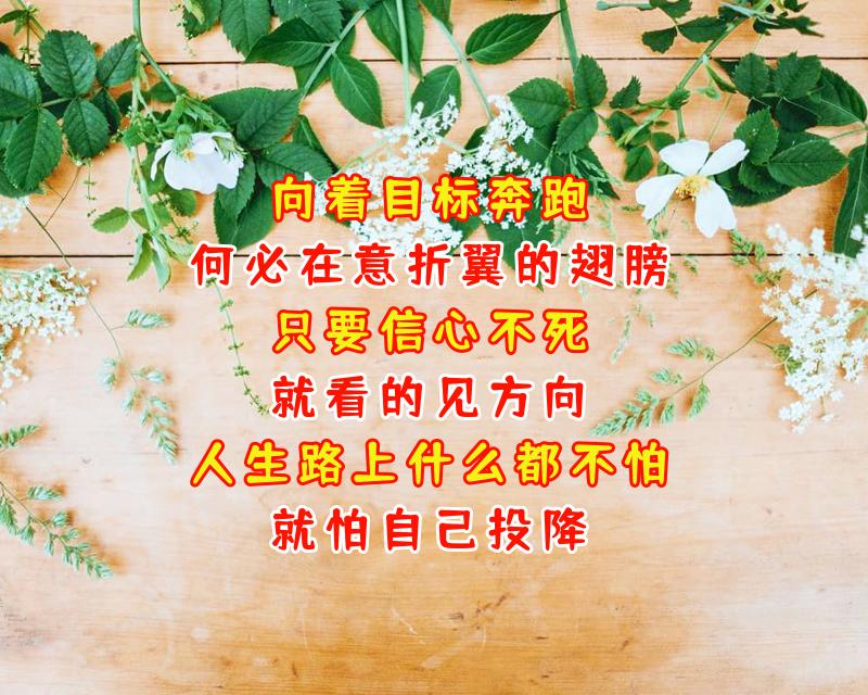 向着目标奔跑,何必在意折翼的翅膀,只要信心不死,就看的见方向,顺风适合行走,逆风更适合飞翔,人生路上什么都不怕,就怕自己投降。