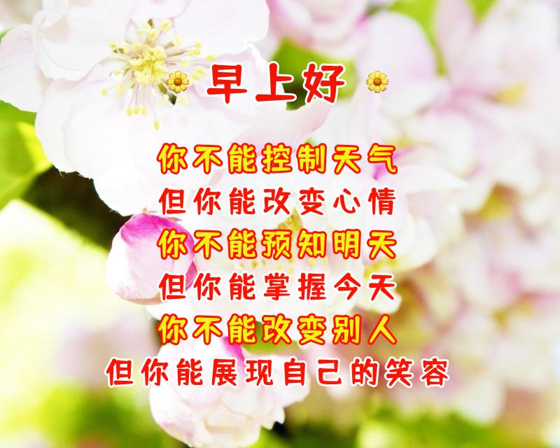 你不能左右生命的长度,但你能加宽生命的宽度;你不能控制天气,但你能改变心情;你不能预知明天,但你能掌握今天;你不能改变别人,但你能展现自己的笑容。