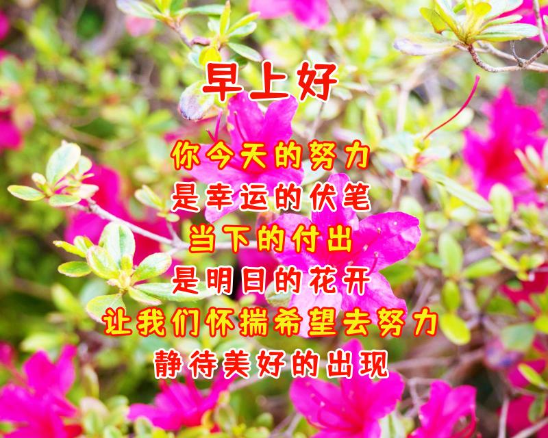 你今天的努力,是幸运的伏笔,当下的付出,是明日的花开。即使现在还看不到成果,请不要着急,最好的总会在最不经意的时候出现。让我们怀揣希望去努力,静待美好的出现。