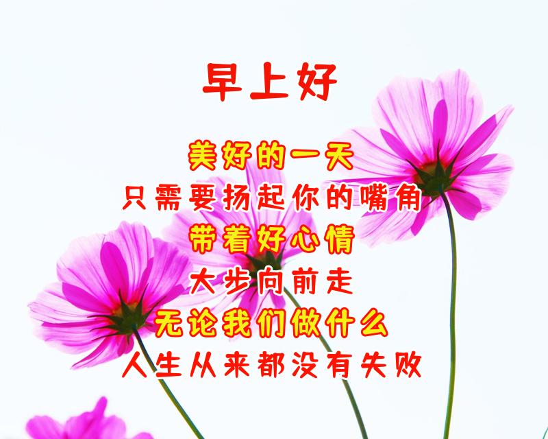 美好的一天,只需要扬起你的嘴角,带着好心情,大步向前走。永远记住,无论我们做什么,人生从来都没有失败,唯一的失败就是自己放弃。