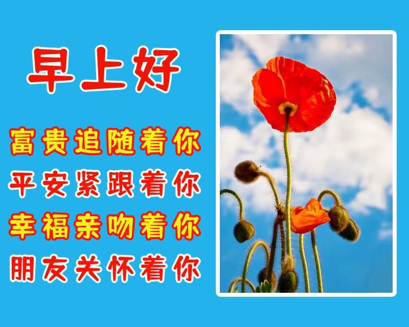 3、富贵追随着你,平安紧跟着你,幸福亲吻着你,朋友关怀着你,早上好