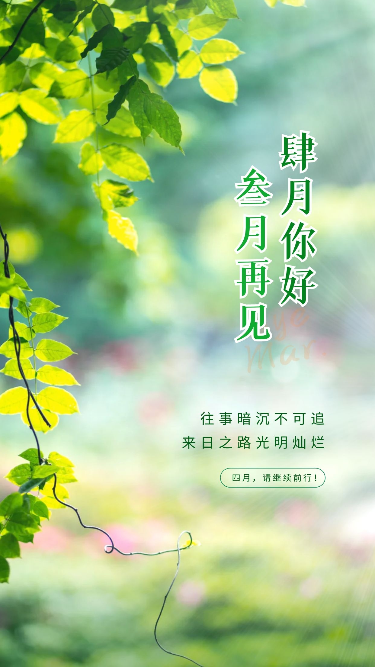 给三月一个温柔的拥抱,说再见。给四月一个坚定的眼神,说你好。