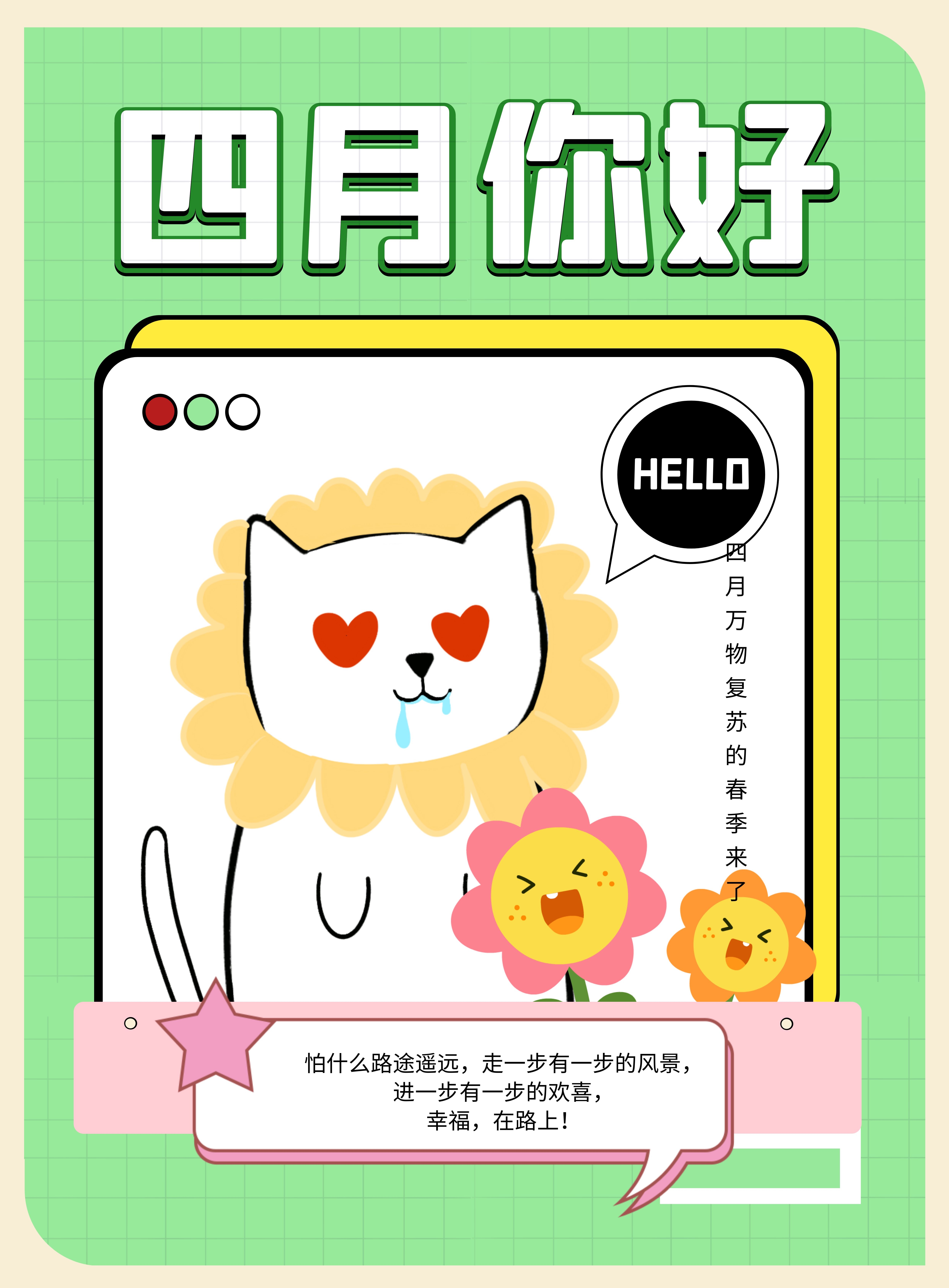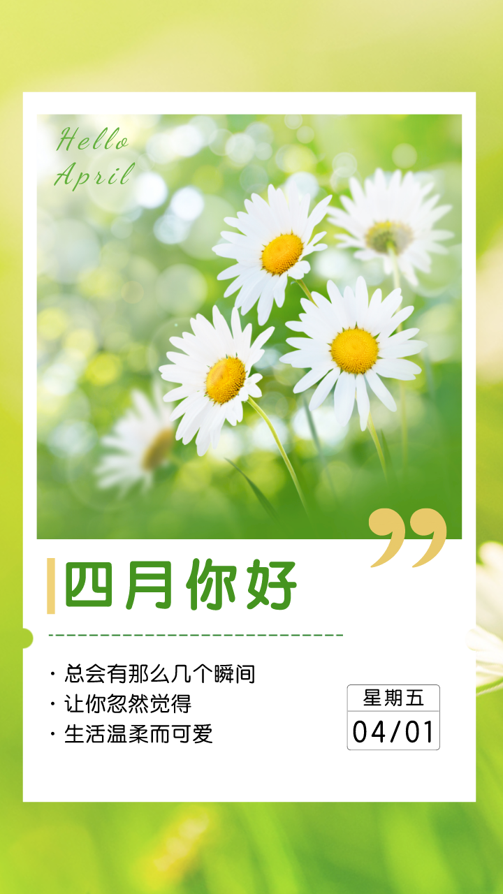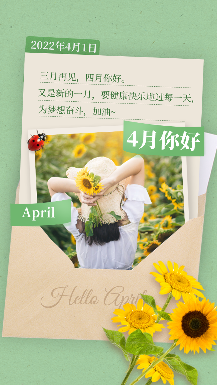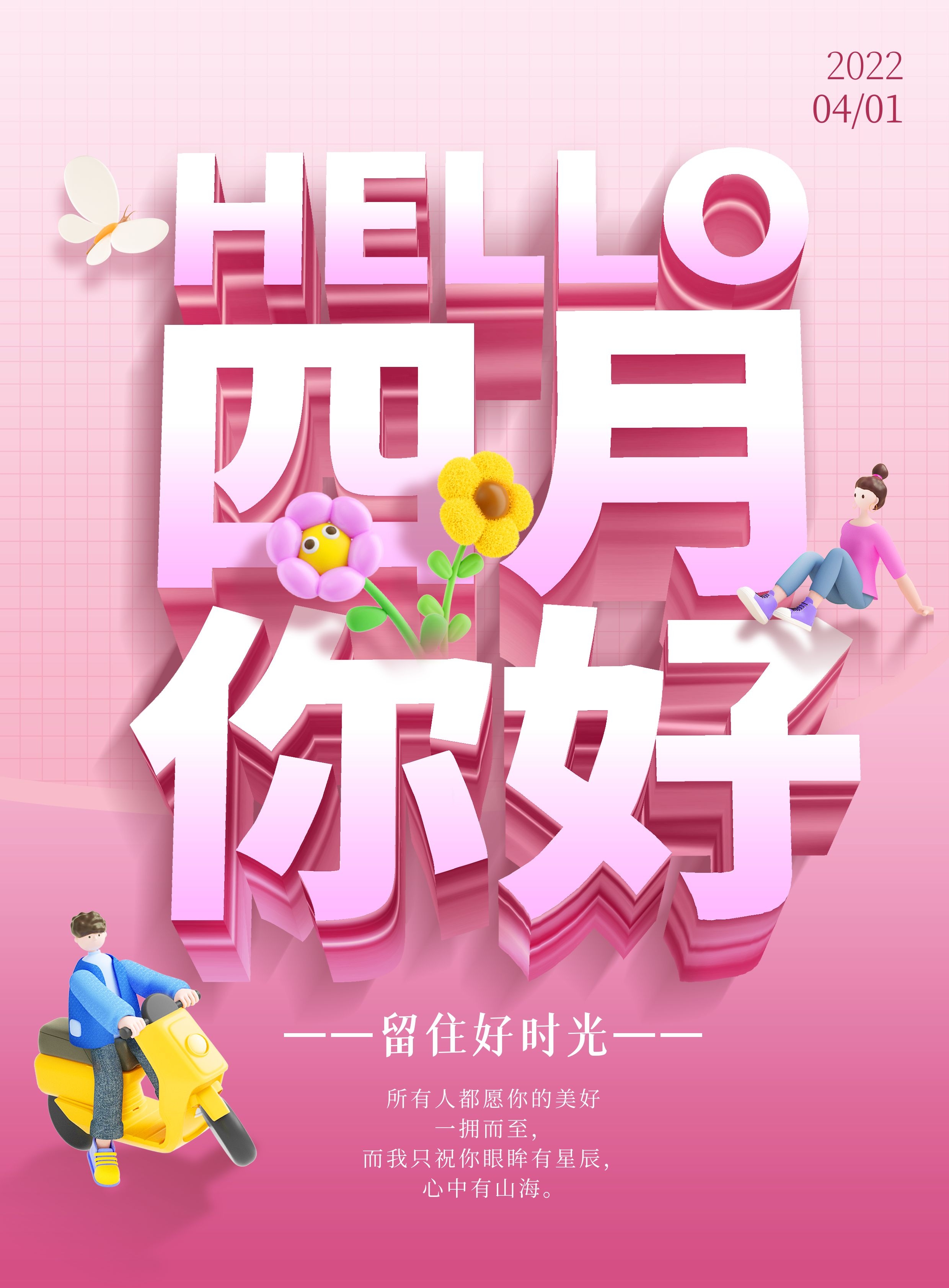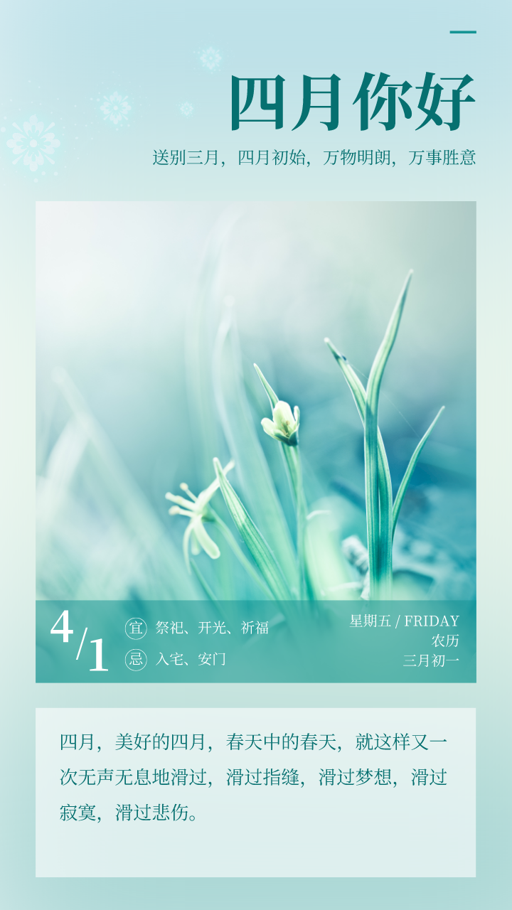 四月你好,不念过往,不畏将来,只争朝夕,不负韶华。与君一起共度四月,将这最美好的祝福赠与你!