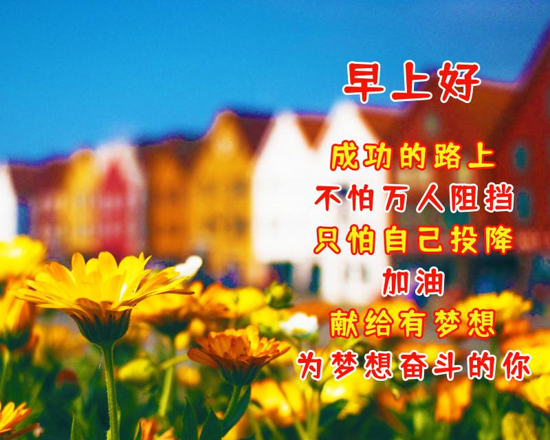 成功的路上,不怕万人阻挡,只怕自己投降;成长的帆,不怕狂风巨浪,只怕自己没胆量,加油,献给有梦想,为梦想奋斗的你!