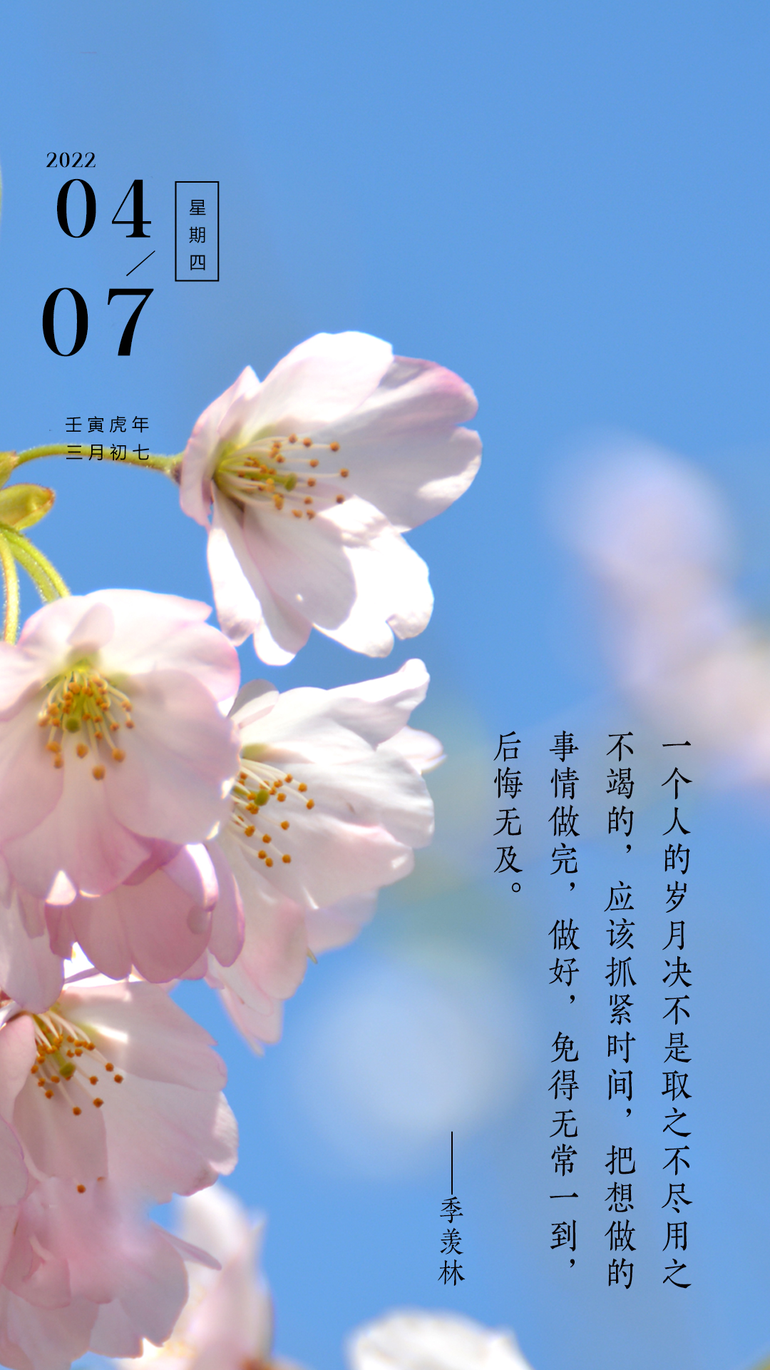 一个人的岁月决不是取之不尽用之不竭的,应该抓紧时间,把想做的事情做完,做好,免得无常一到,后悔无及。