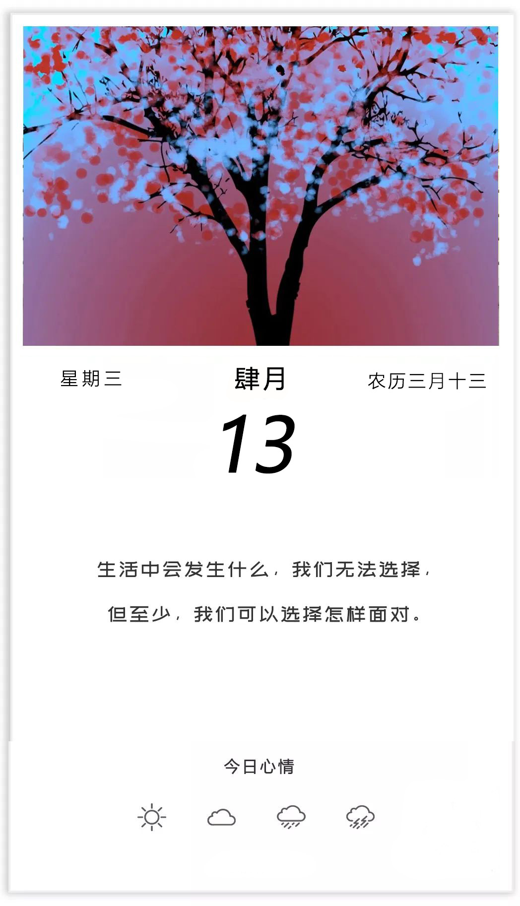 生活中会发生什么,我们无法选择,但至少,我们可以选择怎样面对。早安,周三!