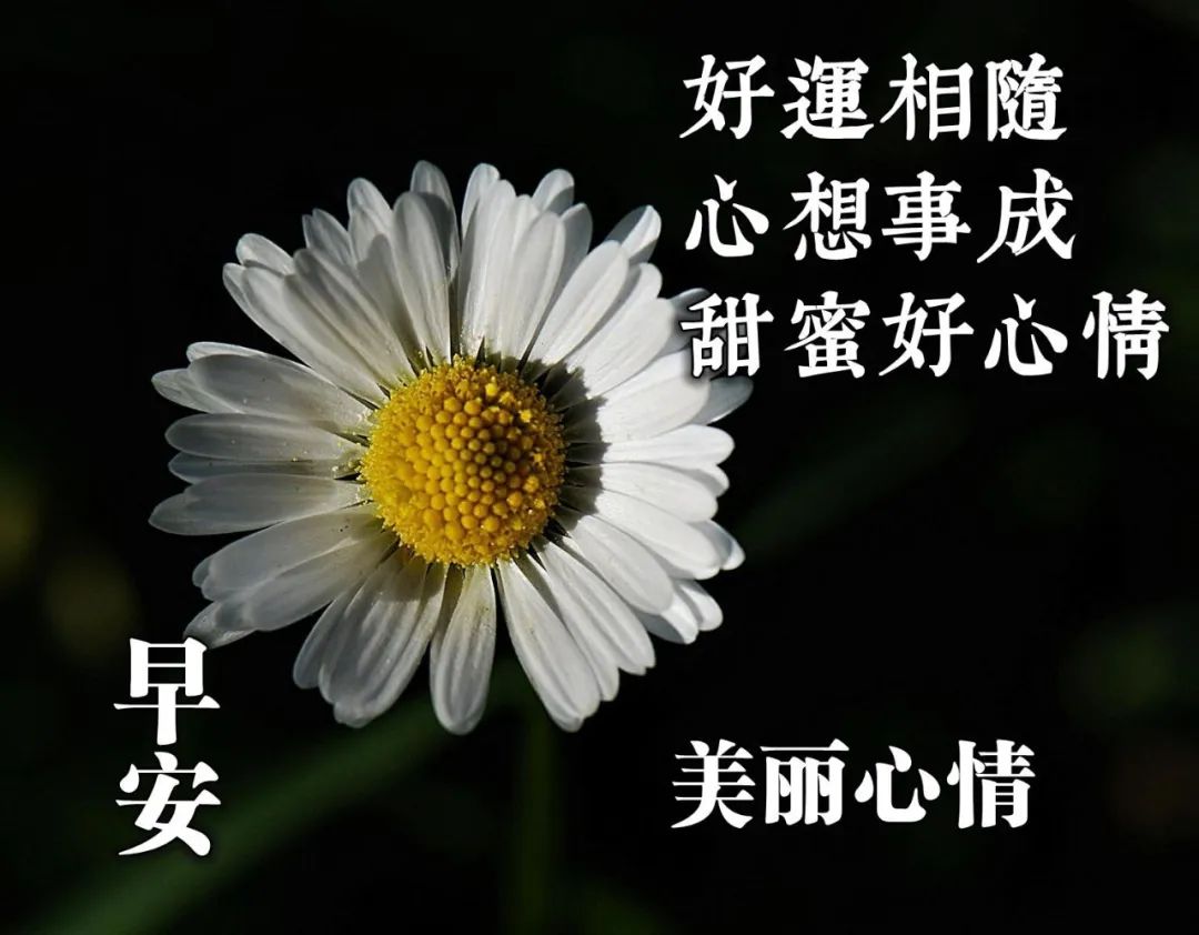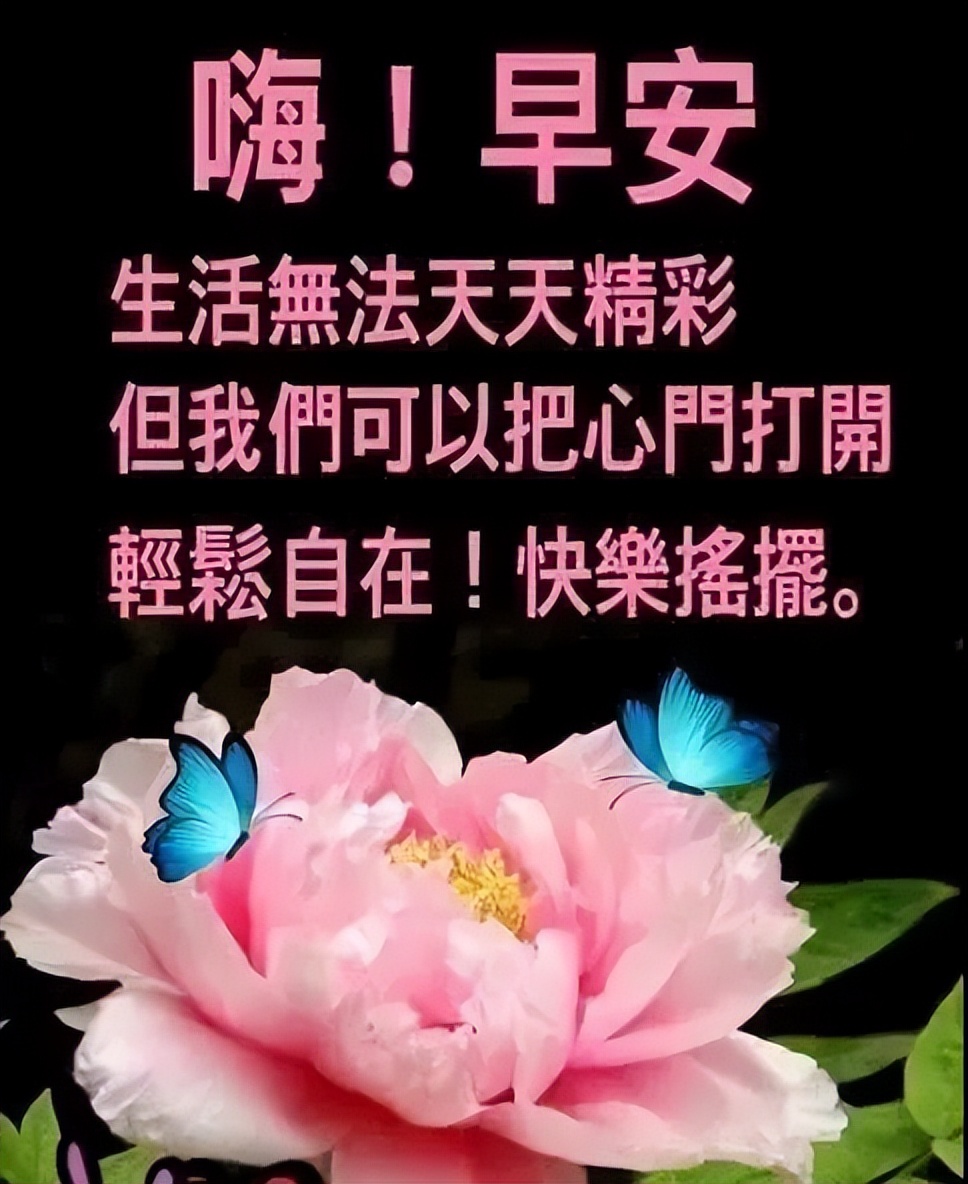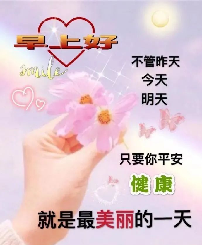 1、早上好!感谢你陪我走过每一个日子,愿有我的日子你每天都精彩,每步都平安,每刻都快乐,每分都如意,每秒都幸福。那些最美的年华,稍纵即逝,感叹,人生总是过得太快,领悟得太晚,失去的同时,也学会了珍惜。以一颗平常心,淡看似水流年,任凭世事沧桑,我自清欢。人生的路途,与其庸人自扰,不如看淡点好,走过万水千山,淡然一生也很美。