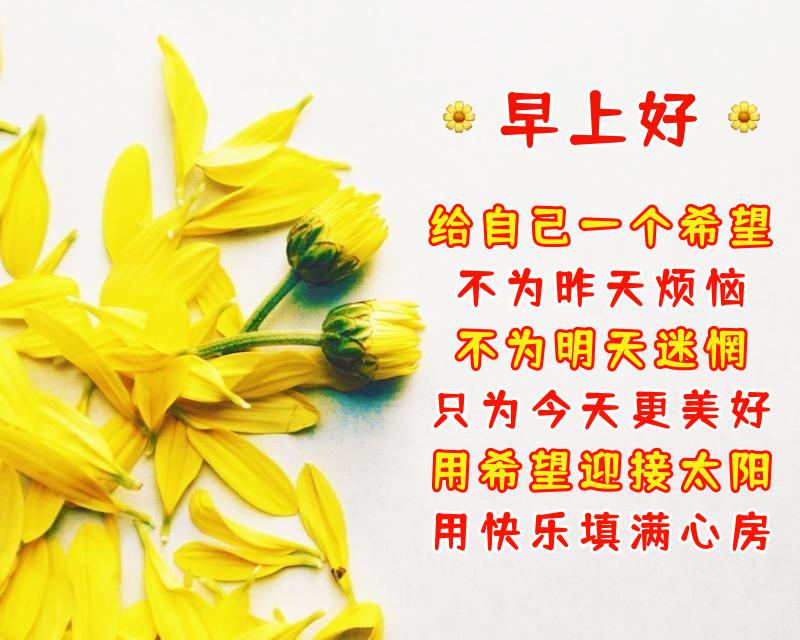给自己一个希望,不为昨天烦恼,不为明天迷惘,只为今天更美好;用希望迎接太阳,用笑声相伴时光,用快乐填满心房。期待一天的充实,幸福安康。