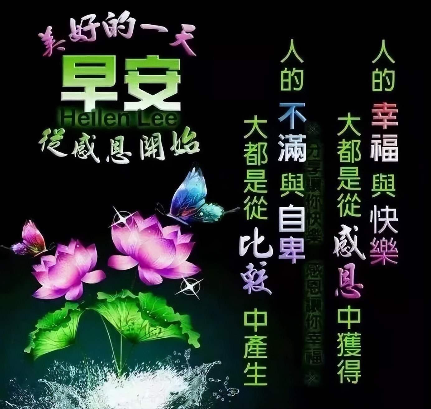 1、过得好时要助人为乐;过得一般时要知足常乐;处于逆境时要学会自得其乐。不要拿别人的错误来惩罚自己,因为不值得;不要拿自己的错误去惩罚别人,因为当你伤害别人时,自己也会再受伤害;不要拿自己的错误来惩罚自己,谁能无过,犯了错误不要紧,只要认真找出原因,吸取教训,改了就好。 星期四,早上好!