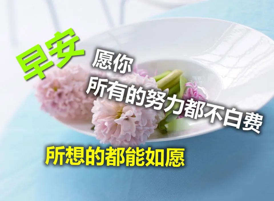 1、喜鹊声声报祥瑞,新的一天好兆头;喝杯清水润润肠,浑身舒坦精神爽;发条信息来问候,道声早安别赖床;牛奶面包不可少,一天才能精神足;早餐一定要吃好,并且还要保证吃饱;此条短信无他意,只愿一天都美好!宁愿做过了后悔,也不要错过了后悔。生活中的历练,让我们理解了责任,于艰难中,懂得了承受,懂得了坚定,慢慢地丰满我们自己。人生,就没有,永远的悲伤;也没有,永远的欢欣。 星期六,早安,朋友!