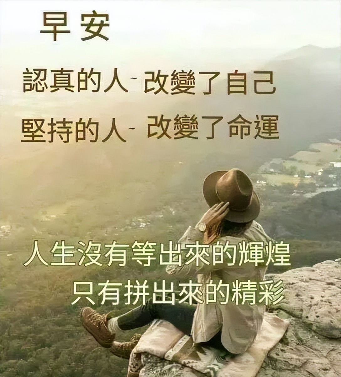 10、我特别想对我身边的所有人说,要有使命感,要特别勤奋,要与人为善,要学会分享,要懂得忠诚,要勇敢、要守信用,要懂得坚韧。这都是古老的价值观,决定你能走多远。永远不要玩小聪明,因为聪明的人太多了。 星期六,早上开心快乐!